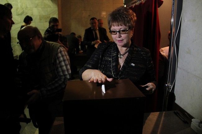 Такое решение депутаты Саратовской городской думы приняли сегодня в ходе тайного голосования. Председатель Счетной комиссии Маргарита Козлова рассказала, что из 38 парламентариев, за Буренина проголосовали 34 депутата, за Кудинова – 0 депутатов. 4 бюллетеня были испорчены (о нежелании участвовать в голосовании ранее заявили представители фракции КПРФ).