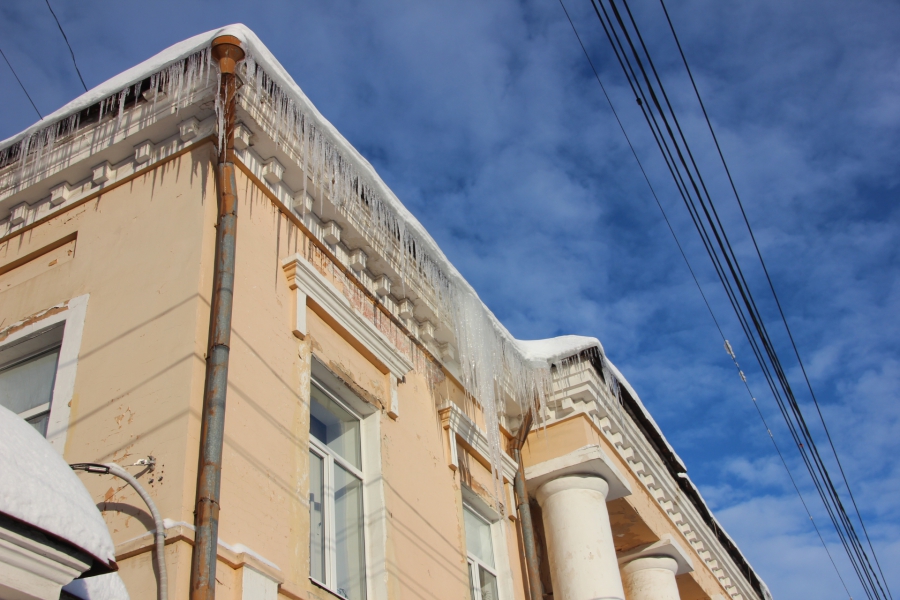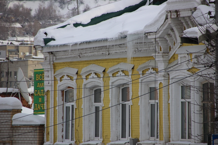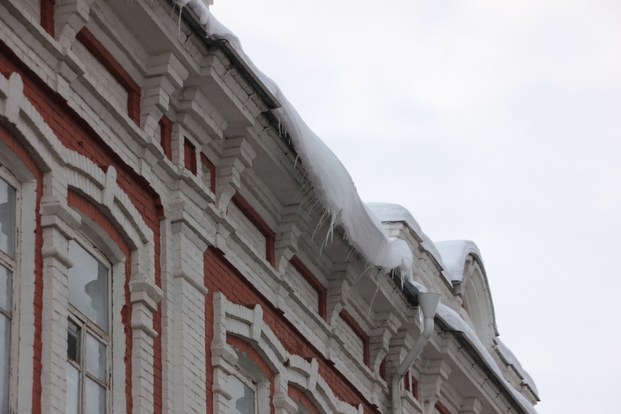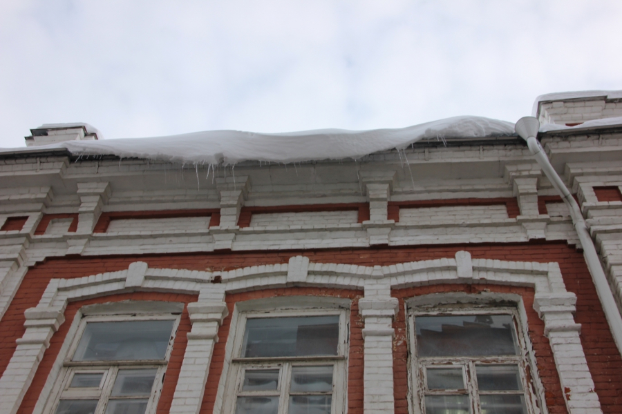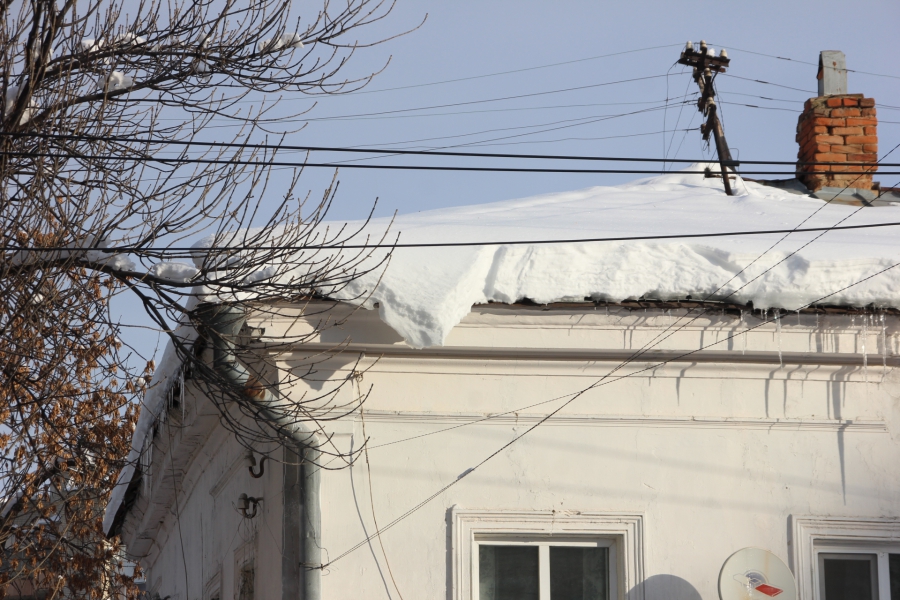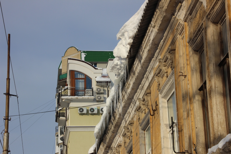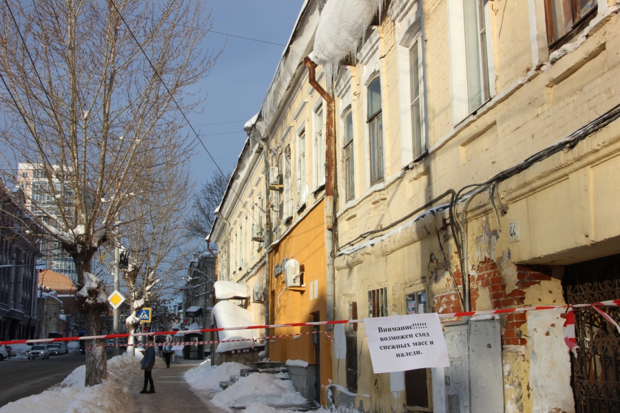 В центре Саратова огромные сосульки и сугробы на крышах угрожают жизни и здоровью прохожих.