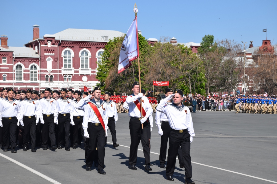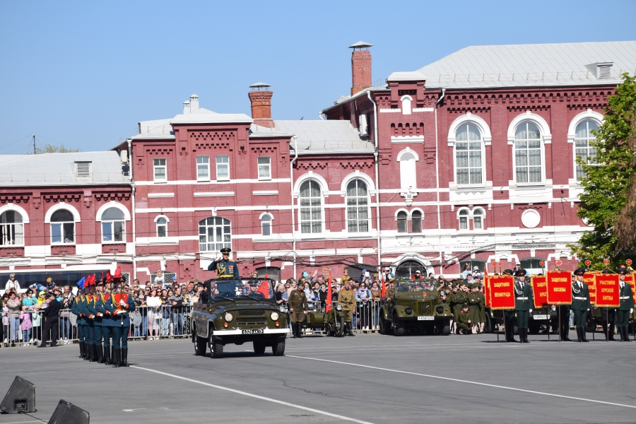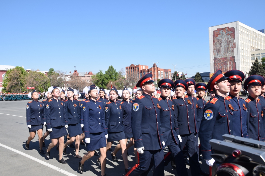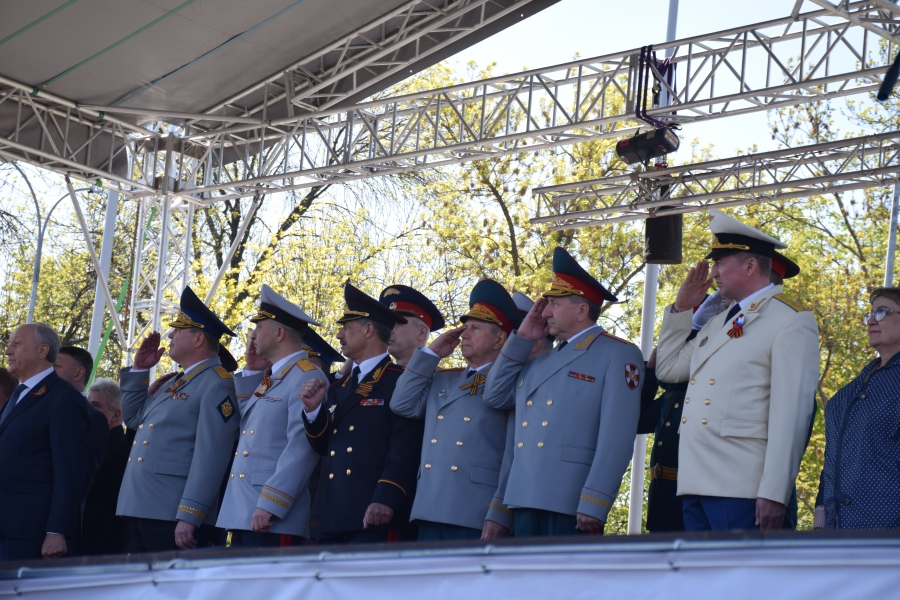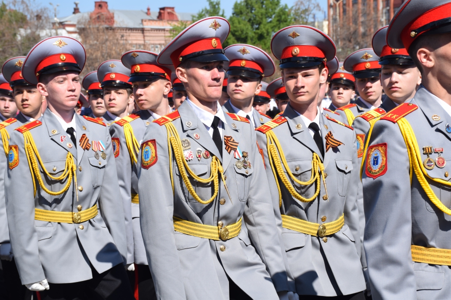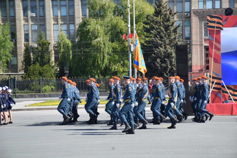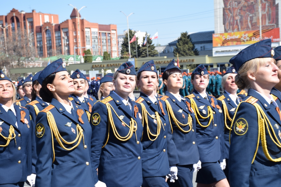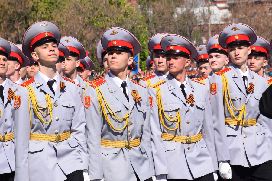 По площади стройными рядами прошли воспитанники вузов области, представители силовых ведомств: МЧС, ФСИН, ГУ МВД. В конце маршировали подрастающее поколение - юнармейцы и кадеты.