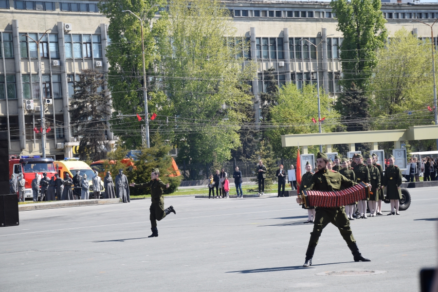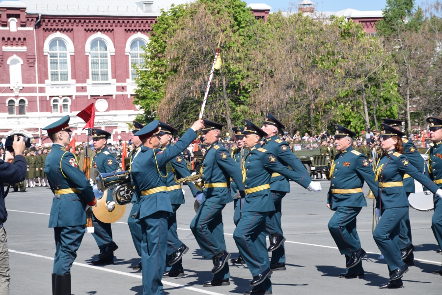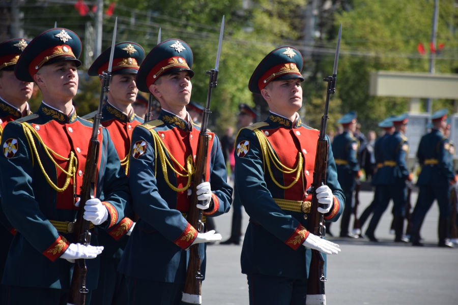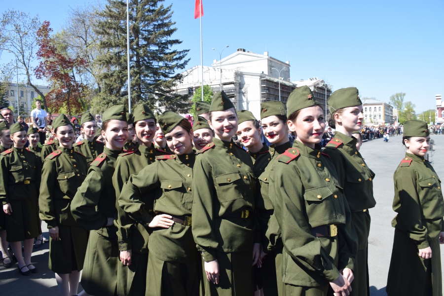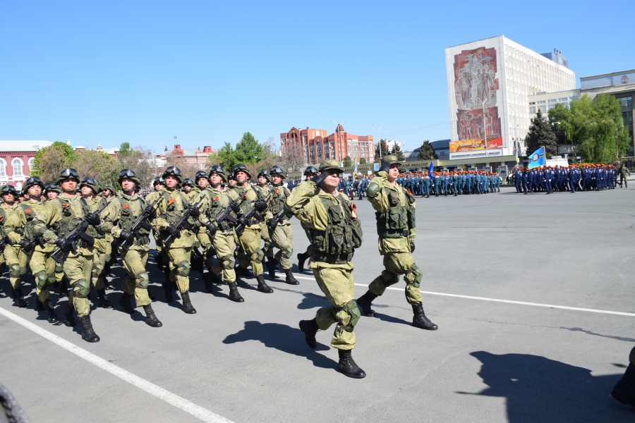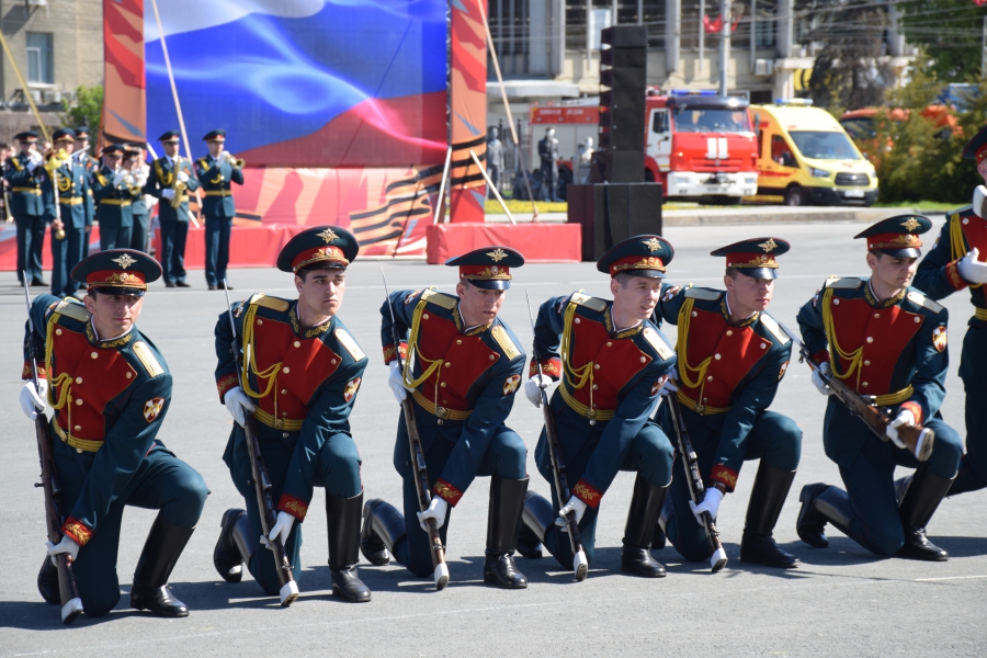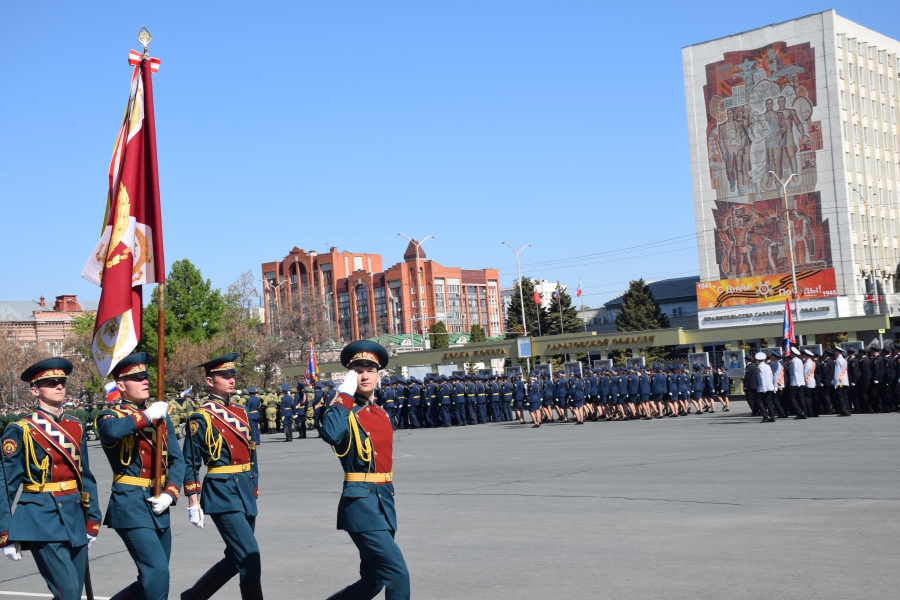 По площади стройными рядами прошли воспитанники вузов области, представители силовых ведомств: МЧС, ФСИН, ГУ МВД. В конце маршировали подрастающее поколение - юнармейцы и кадеты.