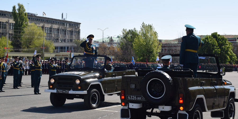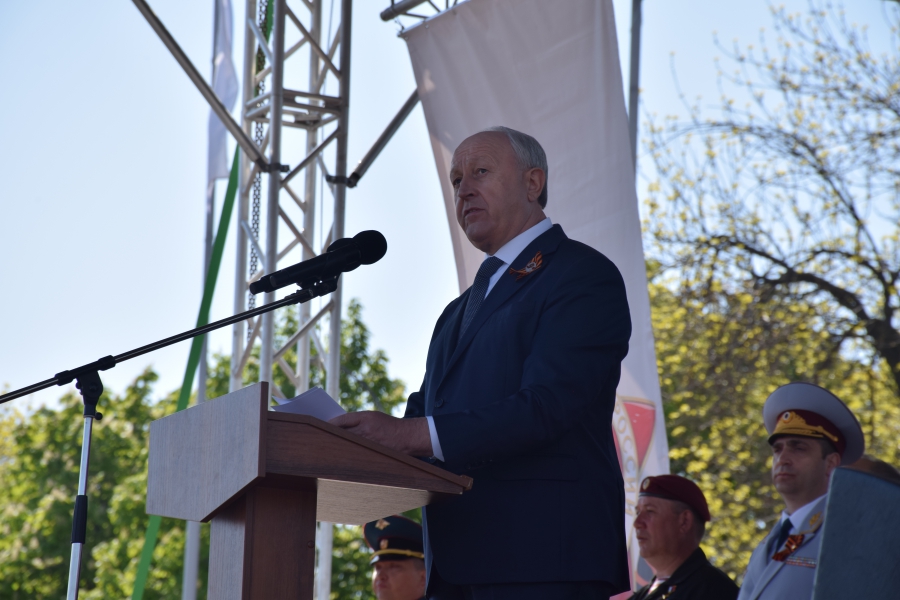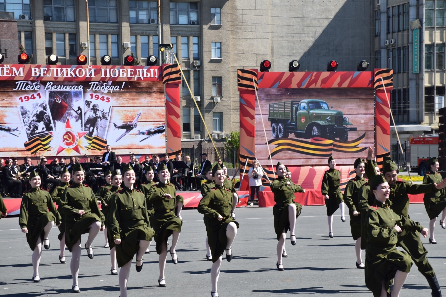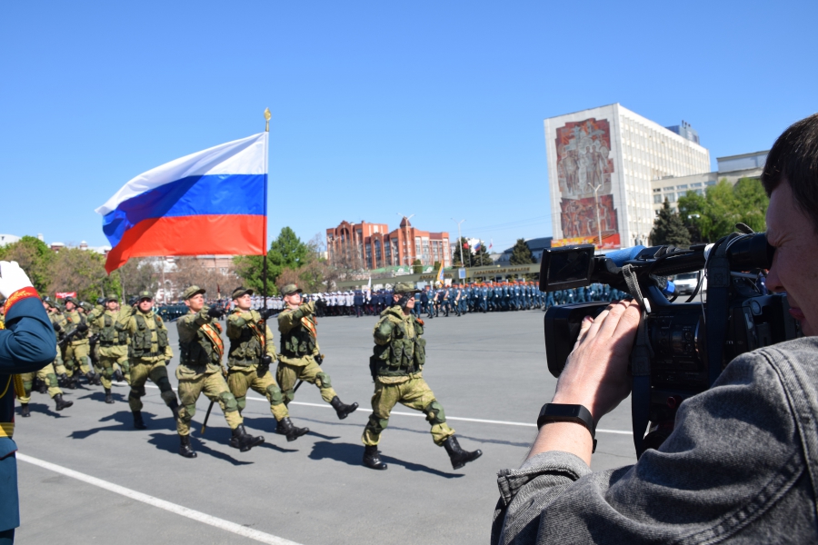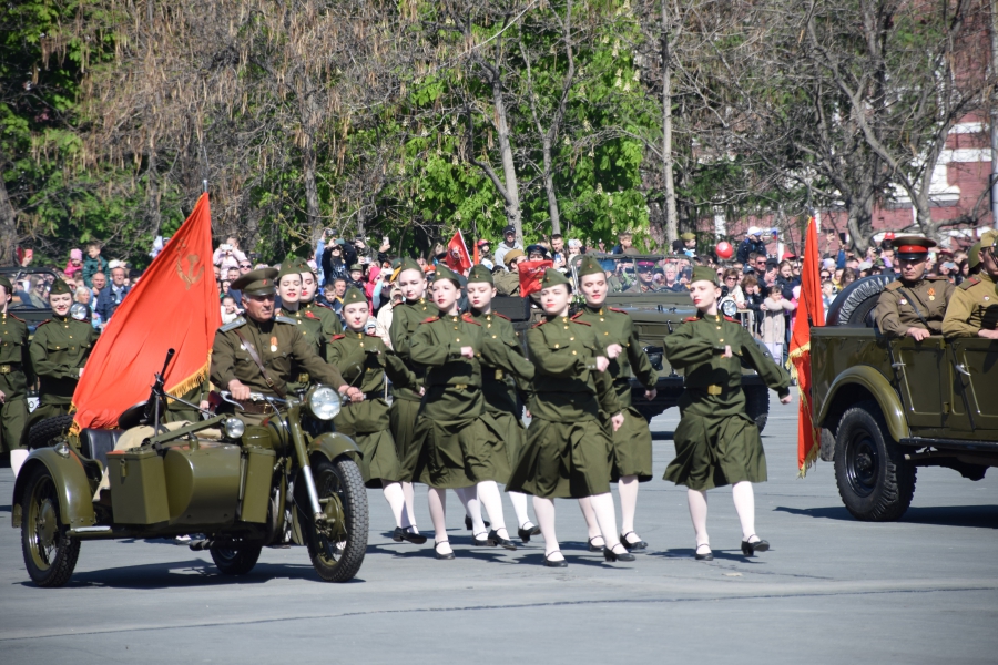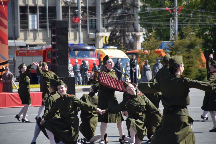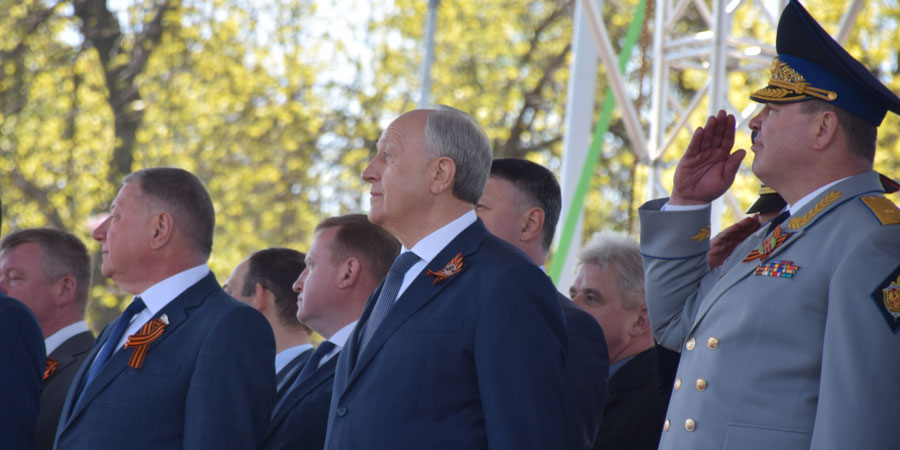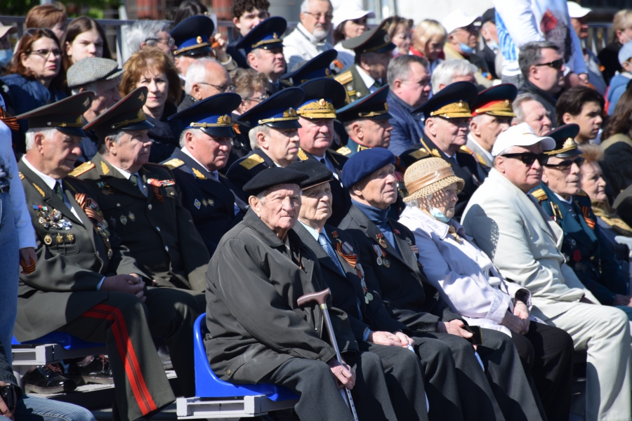 По площади стройными рядами прошли воспитанники вузов области, представители силовых ведомств: МЧС, ФСИН, ГУ МВД. В конце маршировали подрастающее поколение - юнармейцы и кадеты.