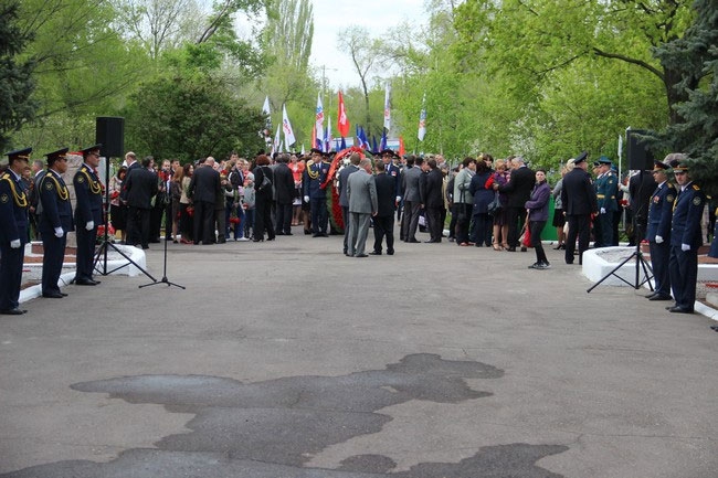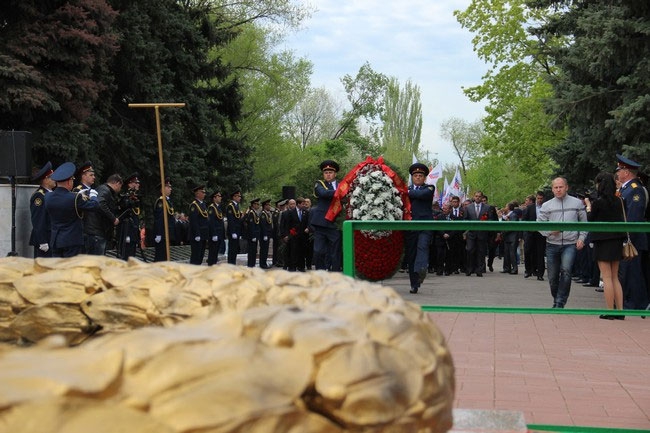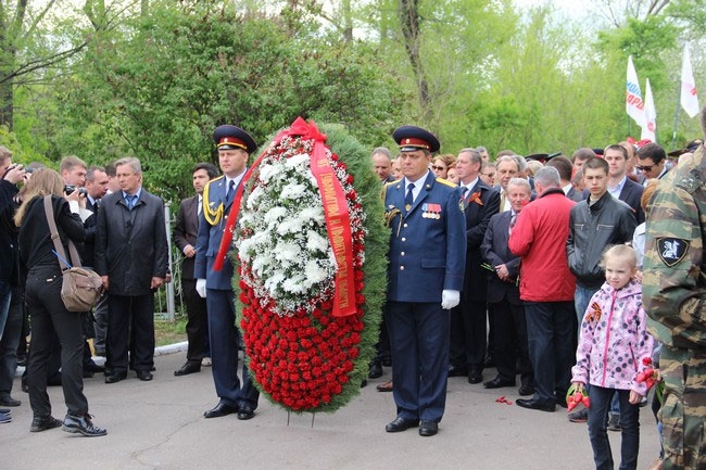 Цветов было настолько много, что для них не хватило специальных стоек возле мемориала. Не поместившиеся венки и цветы складывали у подножия памятника. Кроме того, в завершении события прошла литургия. Память погибших воинов почтили минутой молчания, на месте прошел почетный караул, а также прогремели залпы из автоматов.