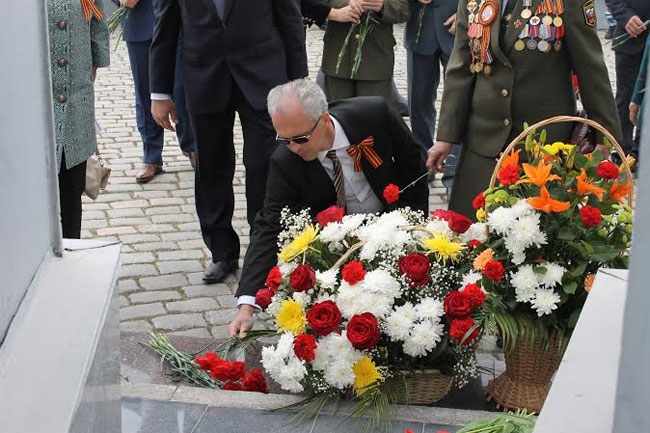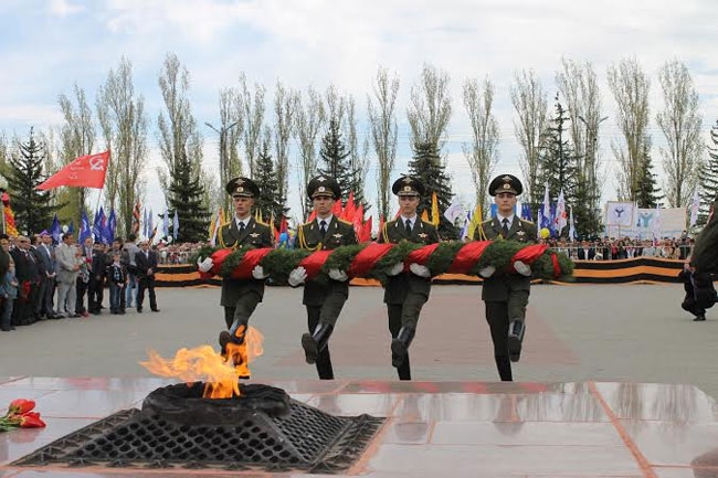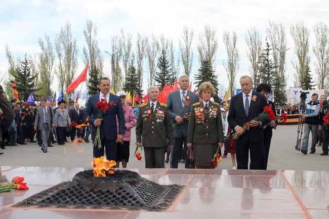 Затем собравшиеся, в том числе депутаты областной и Саратовской городской дум, члены правительства и управлений федеральный структур возложили цветы к Вечному огню.