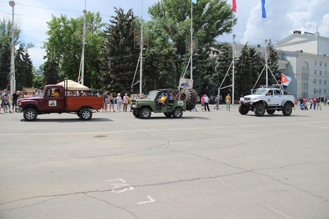 Ретромобили проехали несколько кругов по центральной площади областного центра, после чего, припарковавшись, выстроились для обзора горожан. Помимо машин в параде приняли участие также несколько мотоциклов.