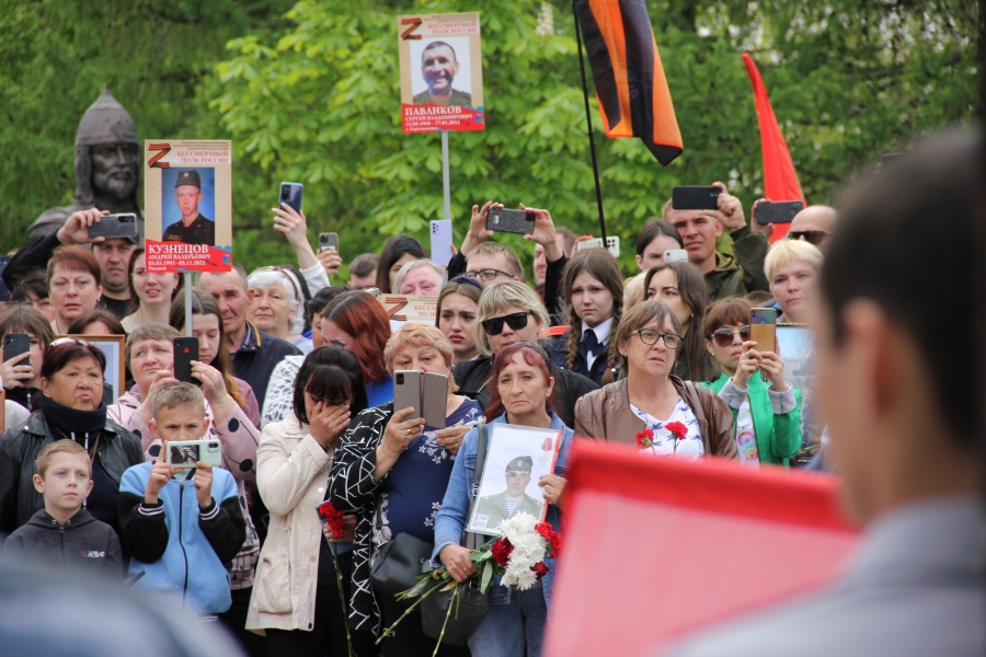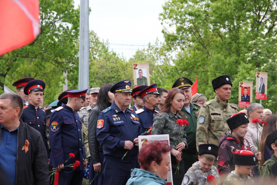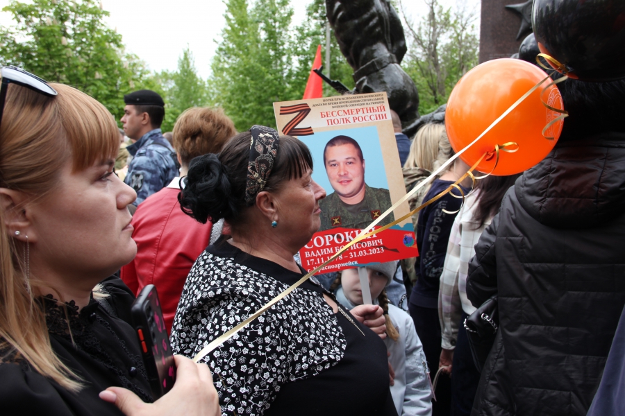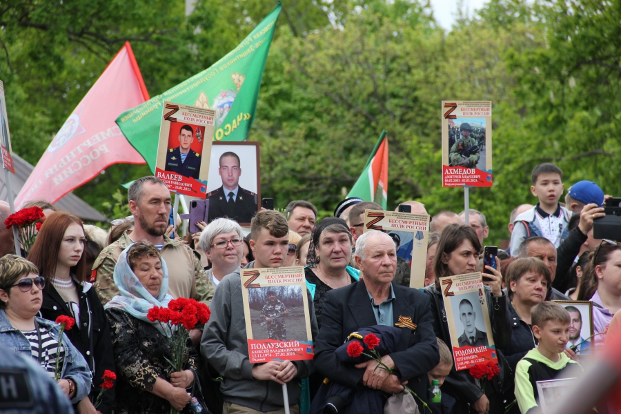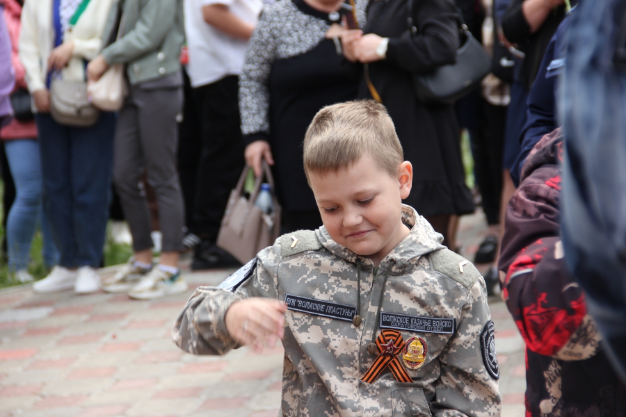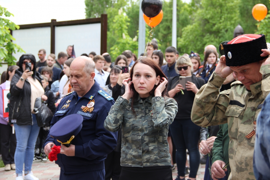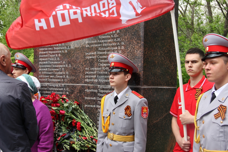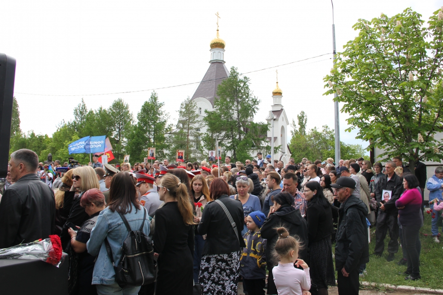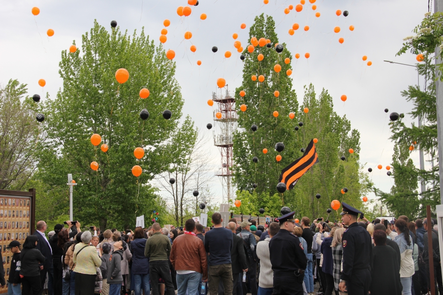 Иерей Владимир Новиков провел молитву и призвал сохранять память о земляках. Собравшиеся подняли вверх портреты погибших и возложили к мемориалу цветы. После проведенной минуты молчания прозвучал троекратный залп. В завершении в небо запустили черно-оранжевые воздушные шары с буквами «Z» и «V».
