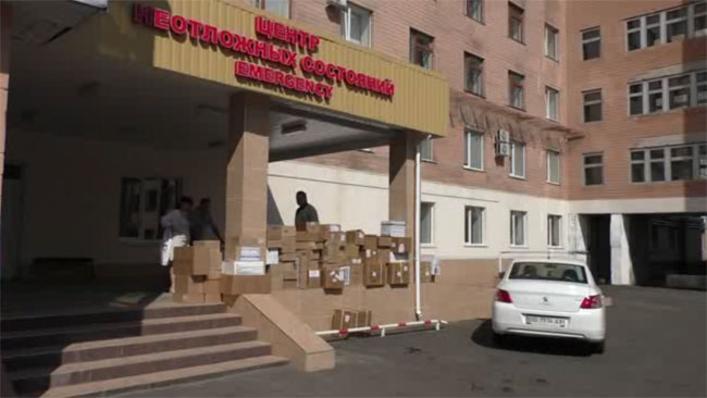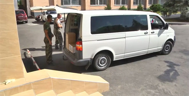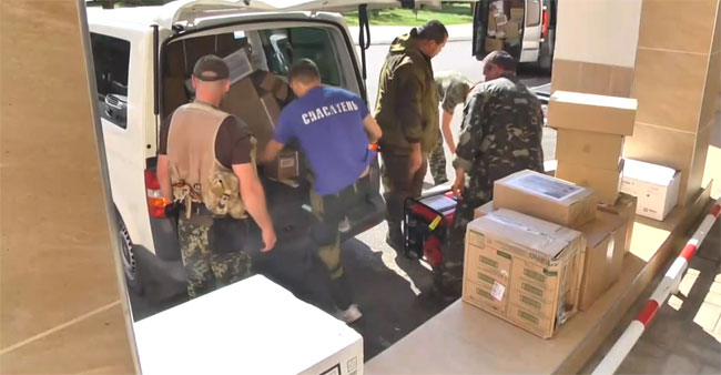 На следующий день часть груза была переправлвлена в Донецк. На всем протяжении маршрута по территории Украины груз сопровождали уполномоченные лица Новороссии. В самом Донецке сопровождающим был лично глава парламента Новороссии Олег Царев. Он передал груз в больницу, где проходят лечение раненные в боевых действиях.