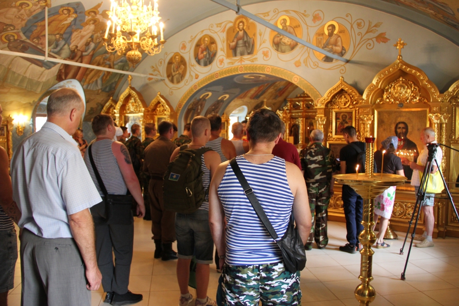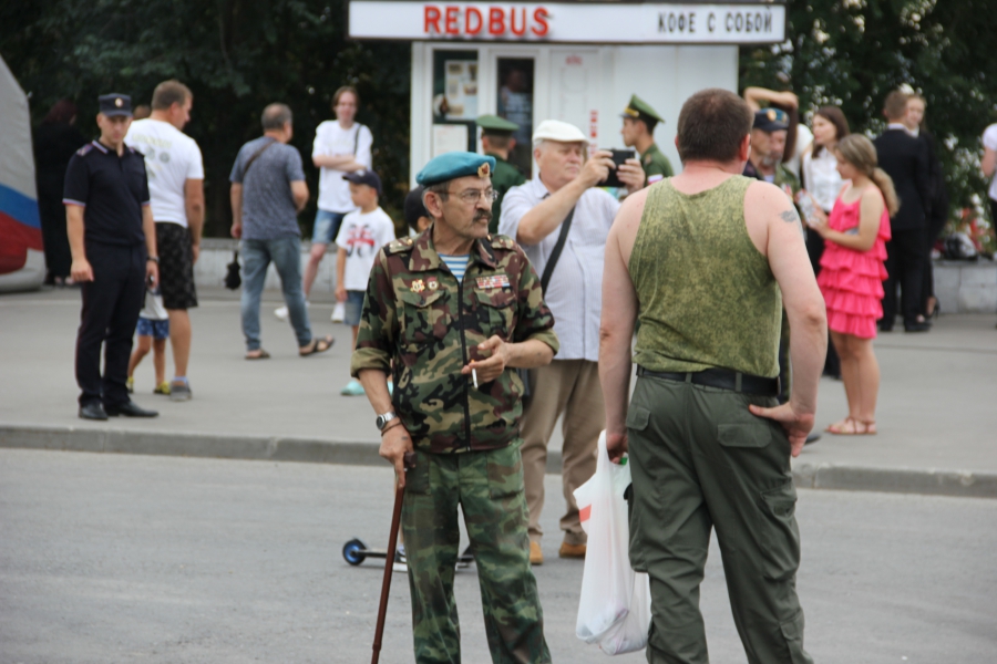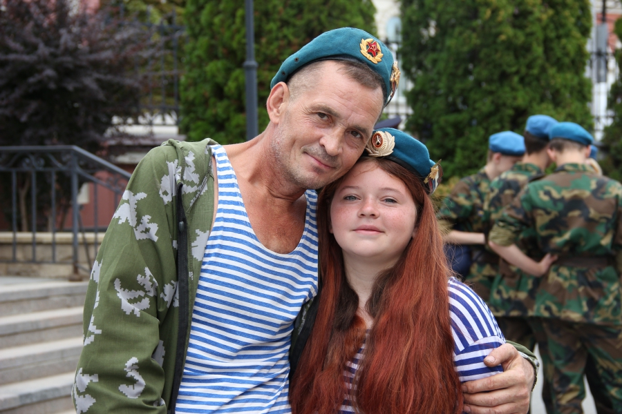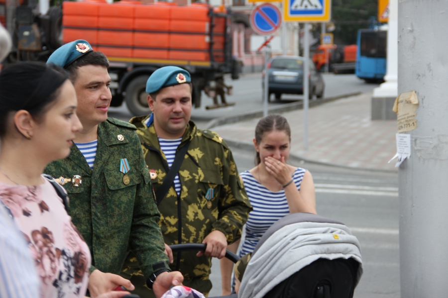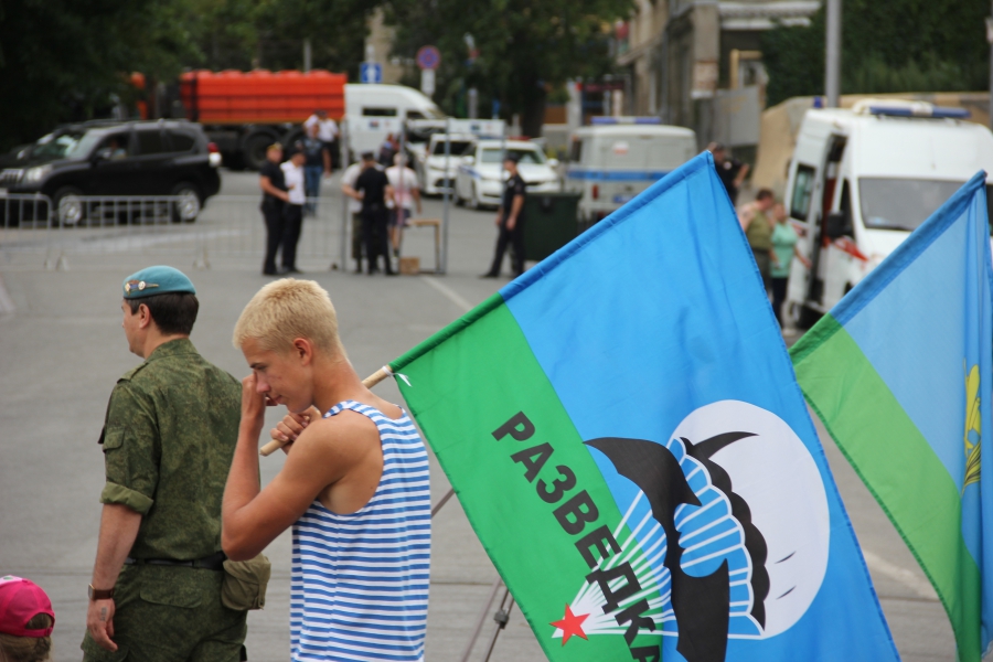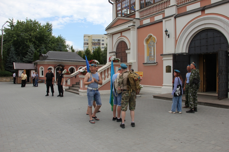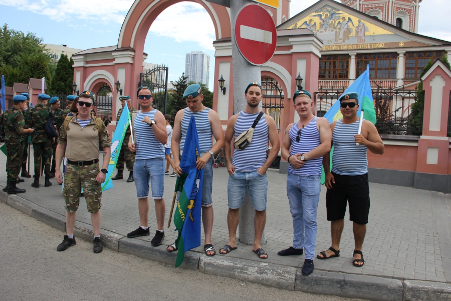 Несмотря на жаркую погоду, десантники отмечают праздник, который собирает вместе ветеранов и молодых военнослужащих. Этот день является символом доблести и мужества. В центре города собрались десятки десантников с традиционными флагами, одетых в тельняшки и голубые береты. Горожане целыми семьями пришли в Свято-Троицкий кафедральный собор, где провели богослужение. Они помолились за соотечественников, поставили свечи и поклонились святым.