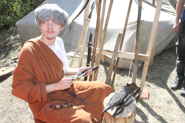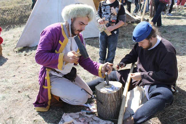 «Реконструкцией занимаюсь с 92-го года. И школьники, и дети, и взрослые подходят, спрашивают, как и что. Потому что технологии старые, им это интересно. На мне одежда, сшитая своими руками, рубаха новгородская, вышивка, порты, сапоги. В этом и смысл реконструкции – увидеть вещь и попытаться ее сделать, как это было раньше», - поделился чеканщик монет Антон Прокофьев.