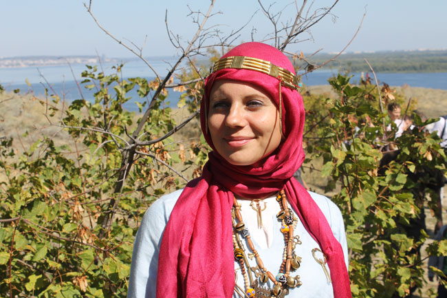 «Я реконструкцией занимаюсь 2 года. По образованию историк, на раскопки ездила и затянуло. Прошлое это интересно, как раньше жили, что было в быту, как выглядели. На мне мордовский костюм. Все сами делаем по археологическим источникам. У нас предусмотрены имена антуражные. У меня имя Рузава, то есть русская женщина», - рассказала участница из Оренбурга Светлана.