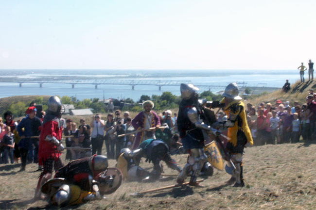 Самым зрелищным моментом на фестивале стало театрализованное сражение. Участники реконструкции в средневековых доспехах сошлись в настоящей схватке друг с другом. Удары были настолько сильными, что у некоторых оставались серьезные вмятины на доспехах.