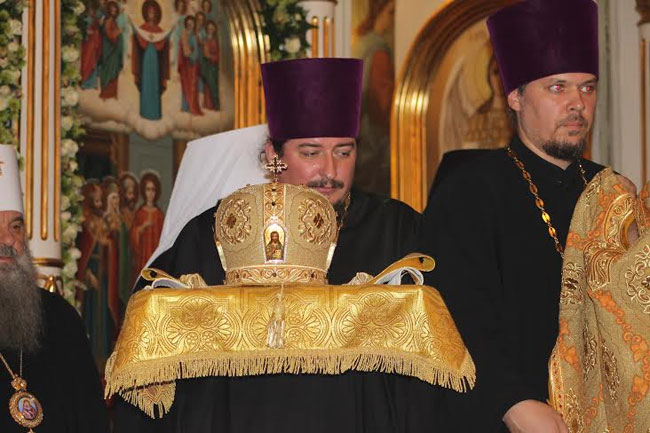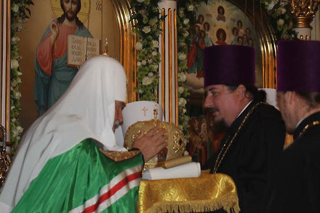 Патриарх Кирилл подарил храму святой образ, в свою очередь ему вручили в дар облачение.