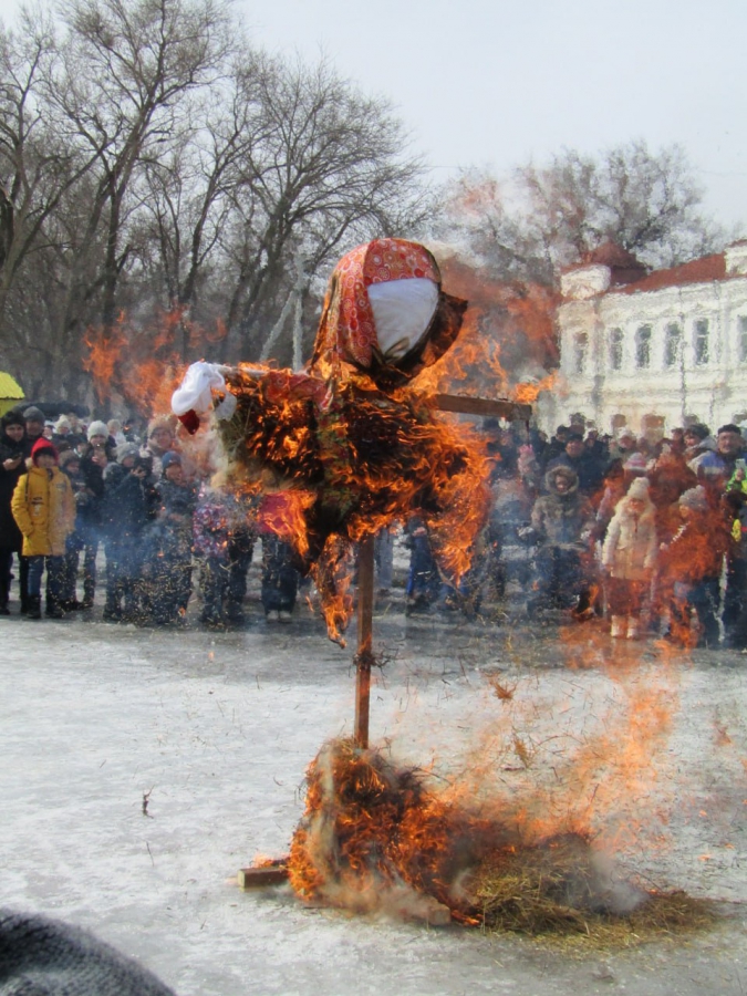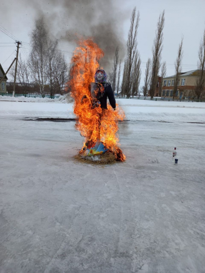 Во всех районах торжество завершили сжиганием чучела. После проведения больших хороводов и танцев вокруг символа масленицы, его поджигают. По традициям, в пылающий костер можно бросать старые вещи, мусор, изношенную одежду. Это давало людям надежду на возрождение и светлое будущее, так они пытались обезопасить себя от напастей, неприятностей, болезней и неурожая.