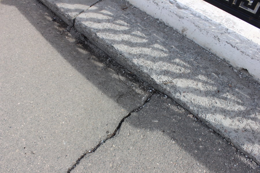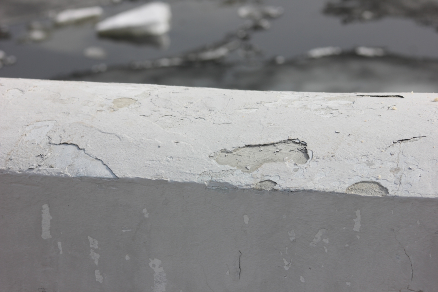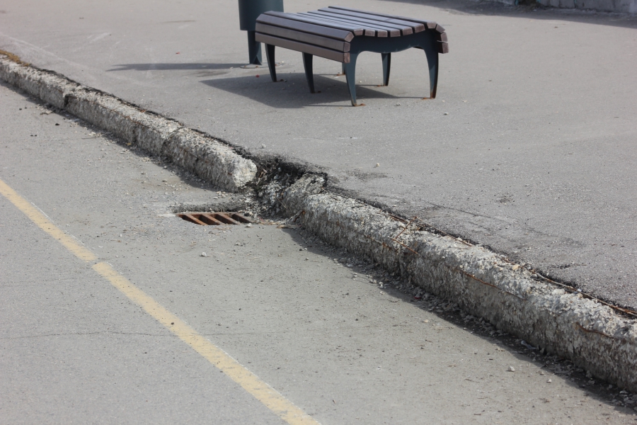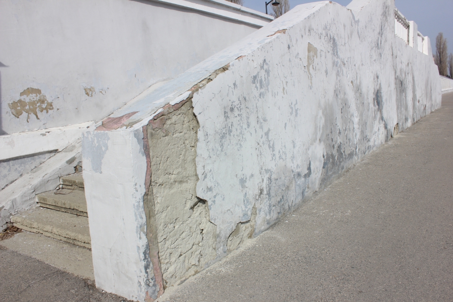 Ограждения-перила из цемента тоже облупились и облезли почти на всем протяжении старой набережной. Не лучшим образом выглядят и бордюры, которые местами покрошились вплоть до щебенки. Плохо пережили зиму тротуары и велодорожки – во многих местах встречаются трещины асфальтного покрытия.