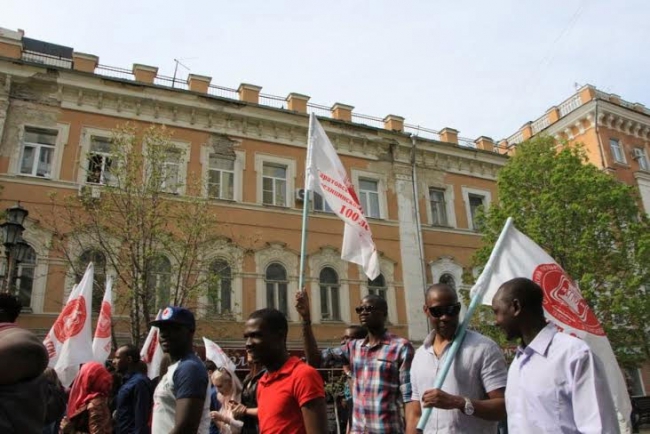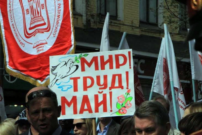 В общей колонне по проспекту Кирова от Крытого рынка до улицы Радищева прошли представители профсоюзов предприятий области, студенты и сотрудники высших учебных заведений, а также работники администраций муниципальных районов. В руках у них были плакаты с призывами об улучшении прав трудящихся. В качестве лозунгов были выбраны следующие фразы «В России заработал – в Россию и вложи», «За мир! За справедливость!», «Пока мы едины – мы непобедимы», «Достойной зарплате – достойную пенсию», «Не будь заложником «серой» зарплаты» и «Три «ЗА» - зарплата, занятость, законность».