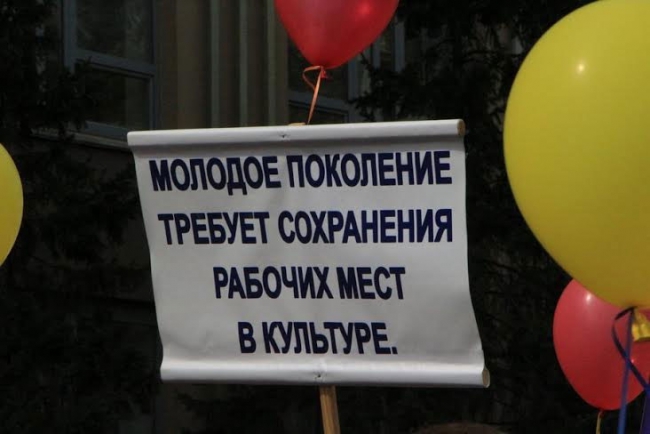 Напротив здания саратовской консерватории развернули сцену, с которой митингующих приветствовал глава региона и другие официальные лица области и города.