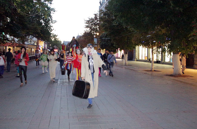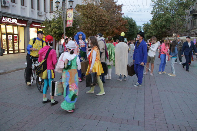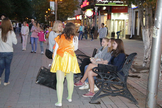 Вчера в центре Саратова состоялся флешмоб, посвящённый последнему дню лета. Его организаторами выступили актеры театральной студии «На грани».