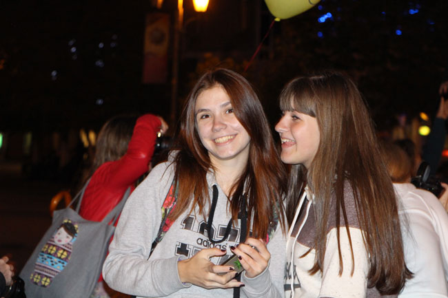 Продолжился флешмоб у памятника Ротонда. Там его участники и примкнувшие к ним единомышленники согревались горячим чаем. В завершении акции все они запустили в небо воздушные фонарики как символ ушедшего лета.