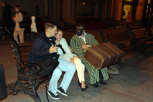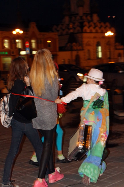 Сами же актёры по пути следования не выходили из роли и со всей серьёзностью в голосе просили прохожих «подсказать, где лето». Кто-то отвечал, что не знает, а кто-то резко отходил в сторону, завидев приближавшихся ребят в причудливых костюмах.