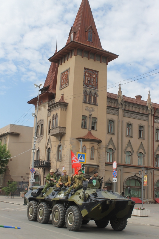 Во главе процессии скакали 6 всадников, одетых в форму пограничников начала XX века, за ними ехал автомобиль с открытым верхом, затем БТР. Участники празднества держали в руках флаги погранвойск, «бойцы» на БТР имели копию знамени Победы.