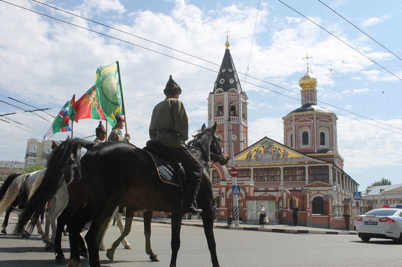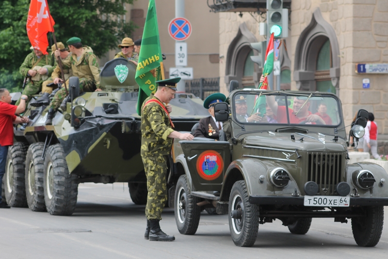 Сегодня в Саратове прошел «Марш славы», посвященный Дню пограничника. Праздничные колонны из кадетов и ветеранов погранвойск прошли бодрым шагом от памятника Чернышевскому, по Московской и расположились на набережной у памятника Гагарину.