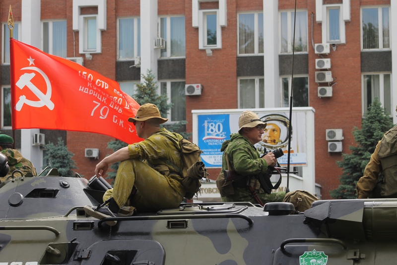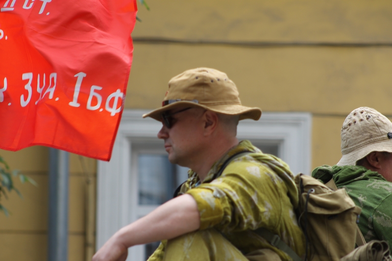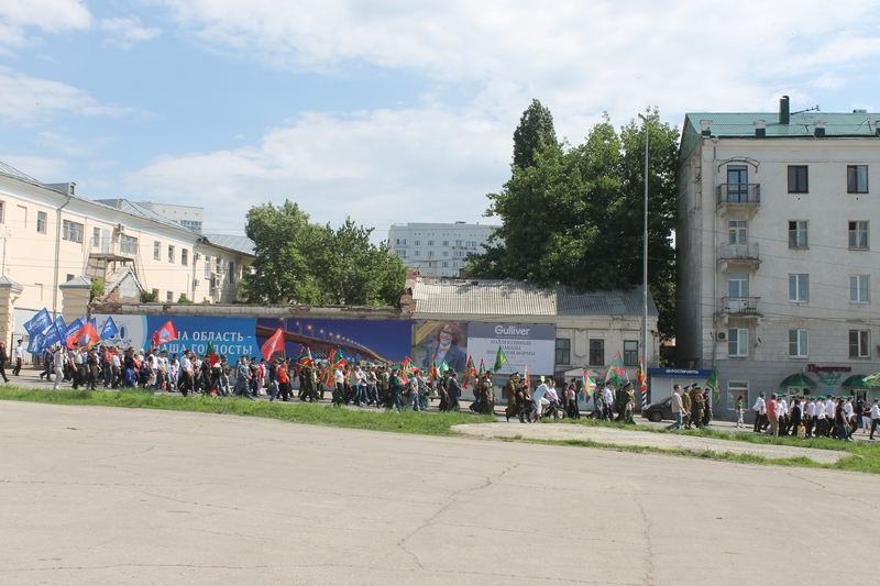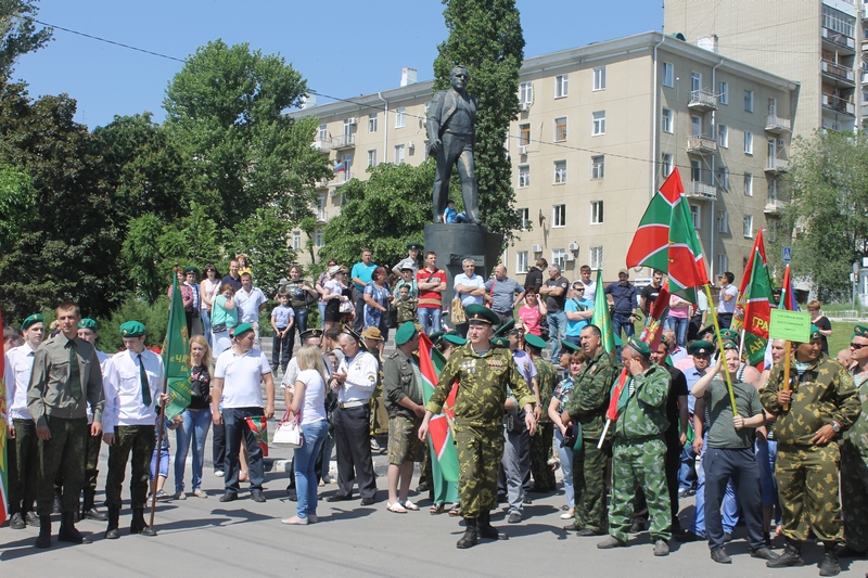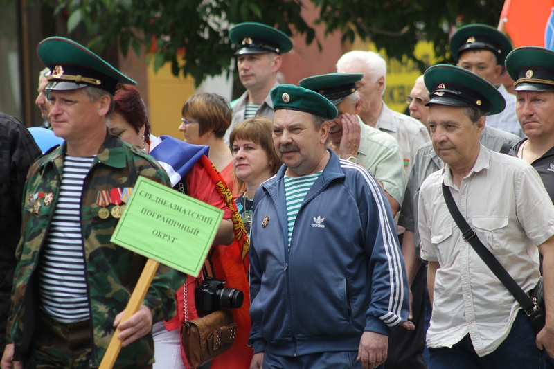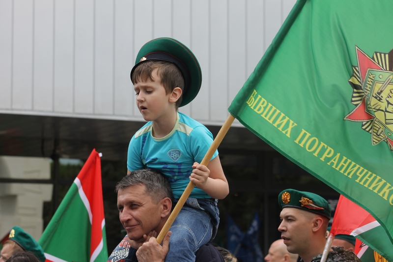 По пути колонны кричали ура, пели военные песни и скандировали кричалку «Слава нам! Слава нам! Слава нам, погранвойскам!».