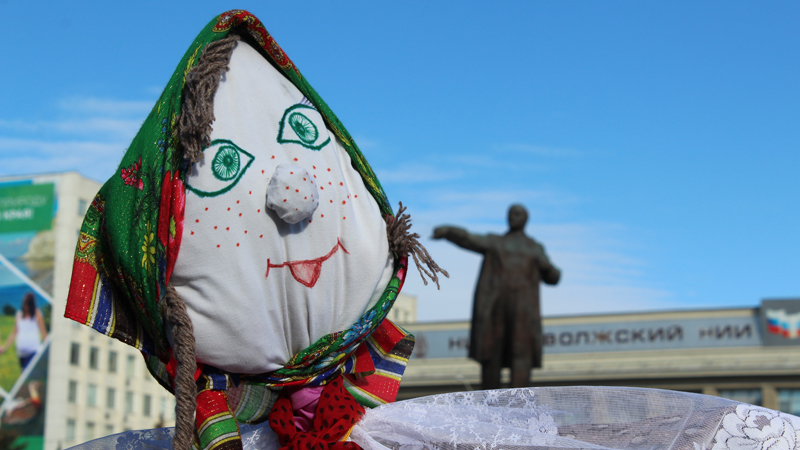 Массовые гуляния прошли и на главной пешеходной улице Саратова - Волжской, в частности, у трамвая «Семен» выступали коллективы и солисты народного и фольклорного отделений консерватории, дома работников искусств.