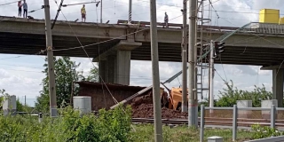Он двигался по путепроводу и съехал в правую сторону, пробив несколько пролетов ограждения