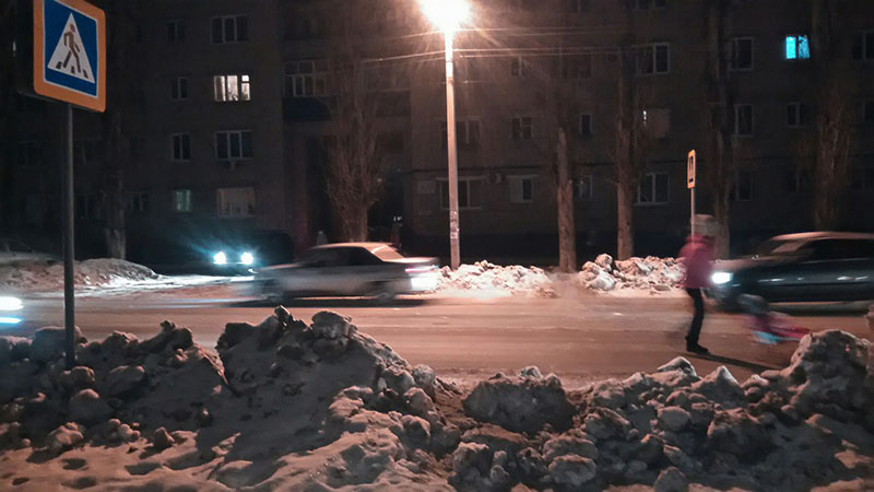 В Балакове Саратовской области неочищенный от снега пешеходный переход опасен для детей и взрослых. Об этом сообщили очевидцы в группе «Типичный Балаково!» в соцсетях, которые дополнили свои слова фотографиями.