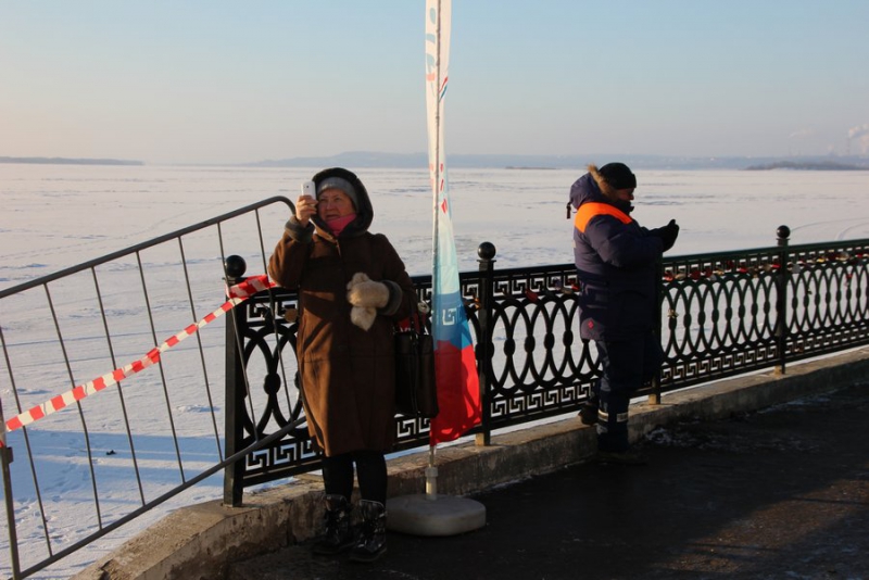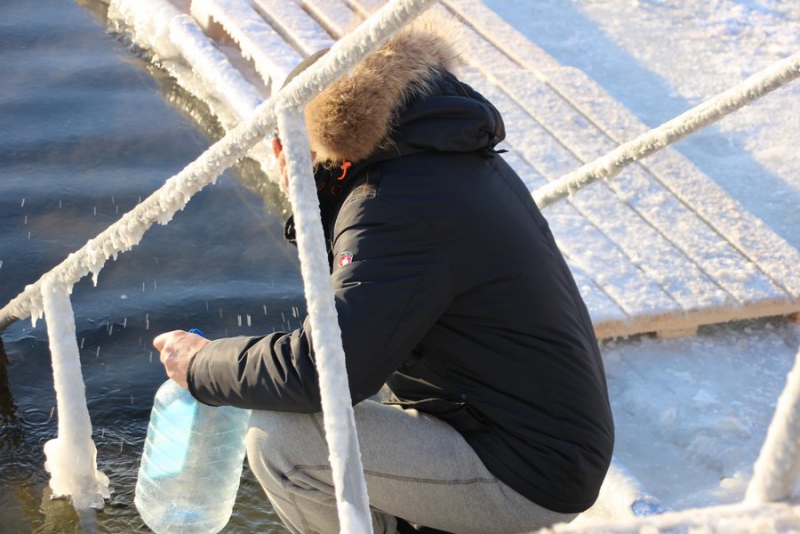 Сегодня утром при температуре воздуха -18 на месте купаний собралось несколько десятков жителей, в основном молодежь, некоторые из них решались искупаться, другие просто фотографировали товарищей.