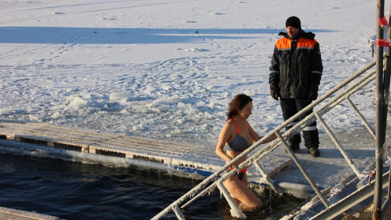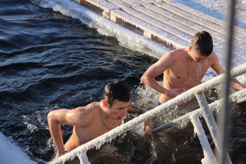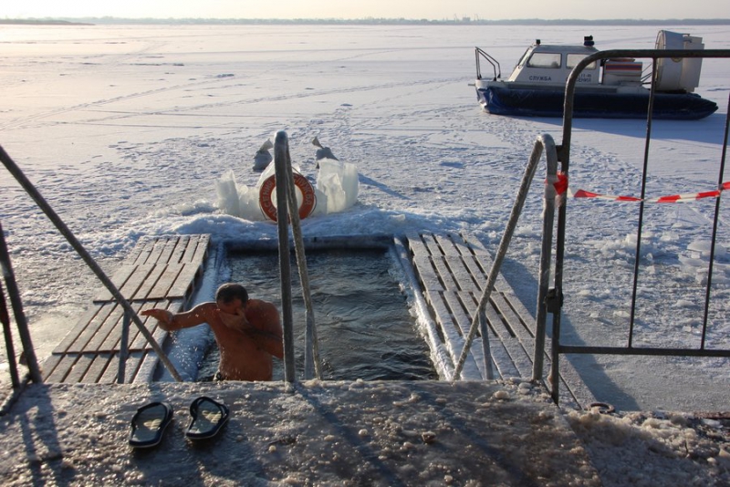 Спасатели рассказали корреспонденту «Четвертой Власти», что люди выныривая из проруби, бегут сразу же в тепло, не обращая внимания на потерю части своего гардероба.