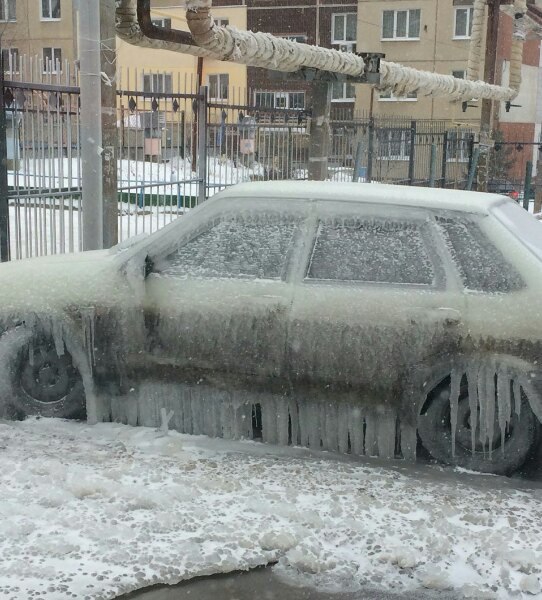 Комментаторы придумали снимку название «машина Снежной королевы» и посоветовали во избежание подобных случаев ставить транспорт подальше от коммуникаций, а лучше всего воспользоваться услугами автостоянки.
