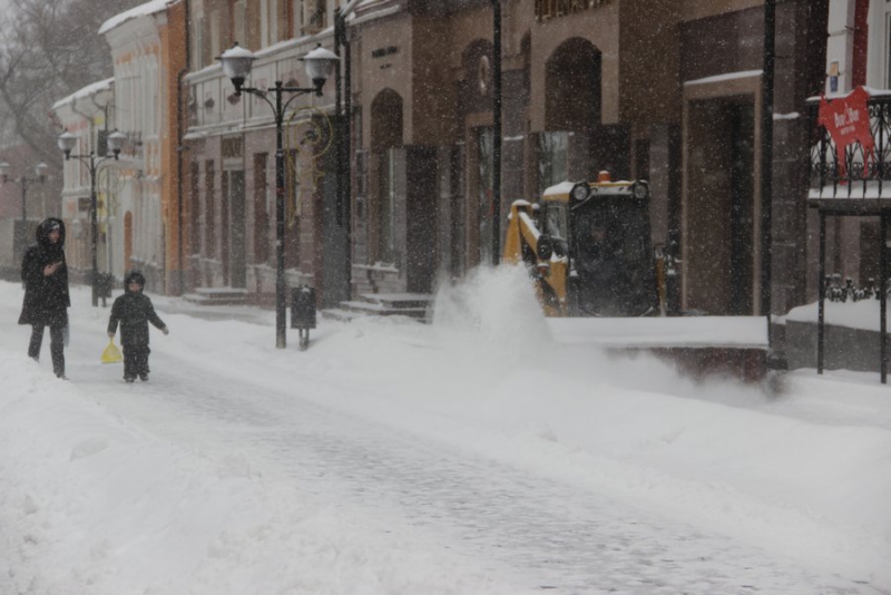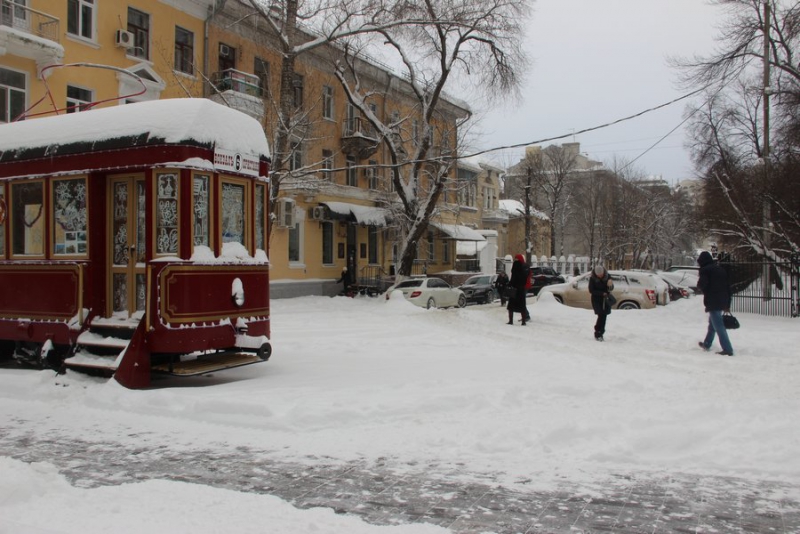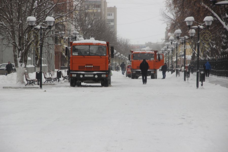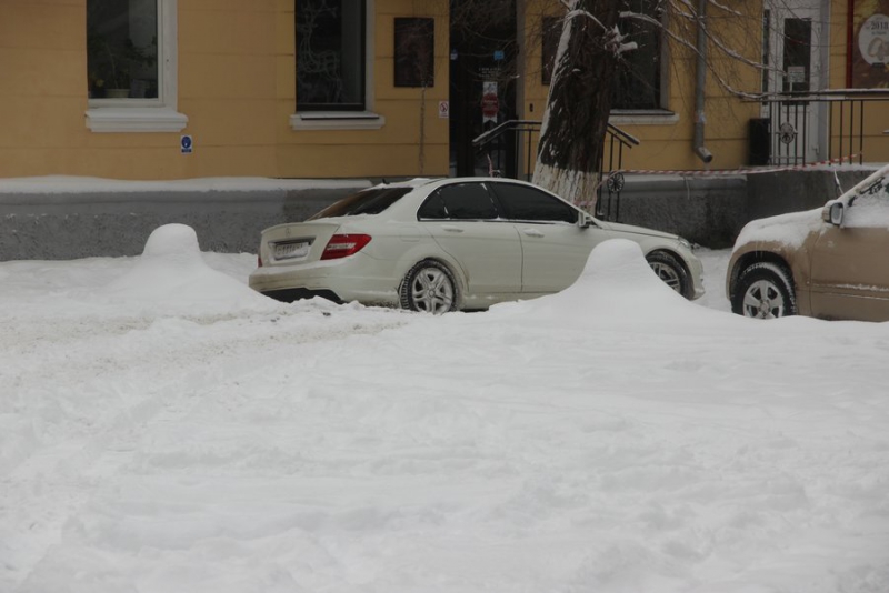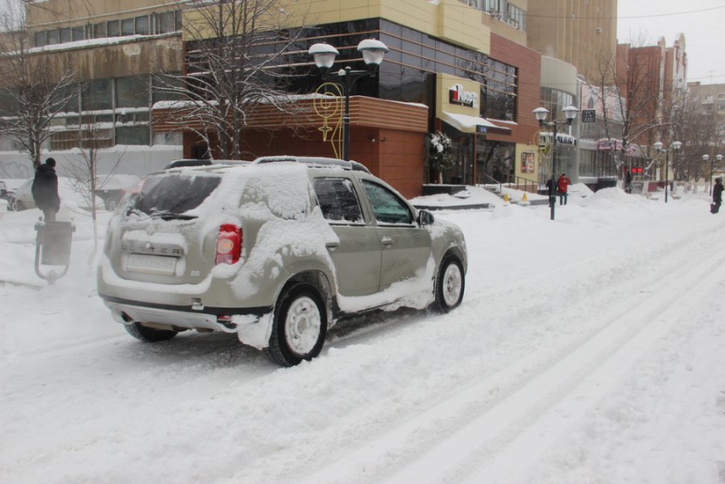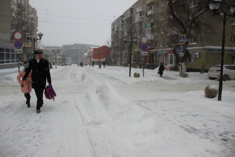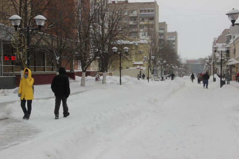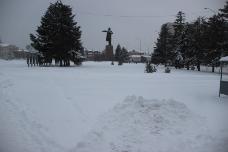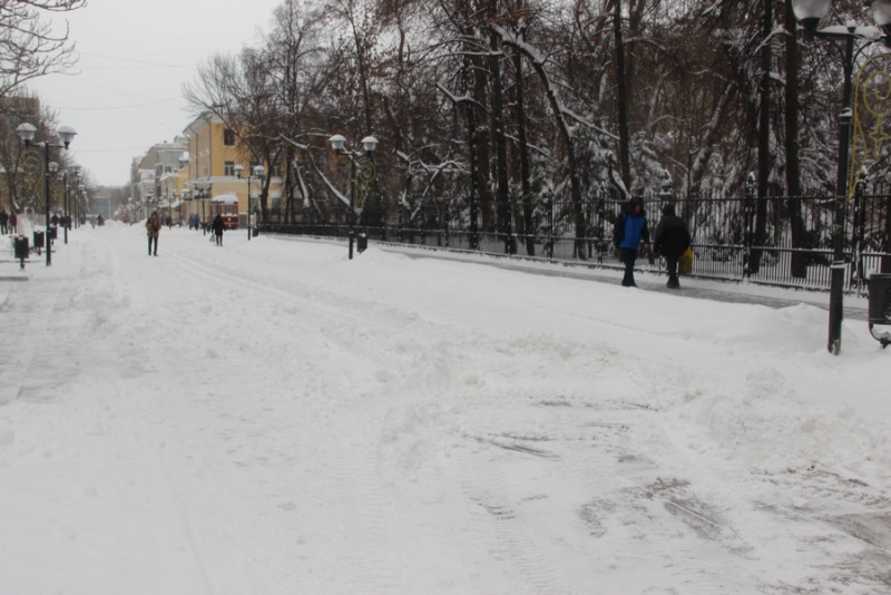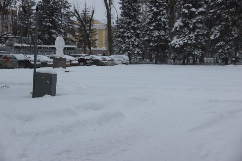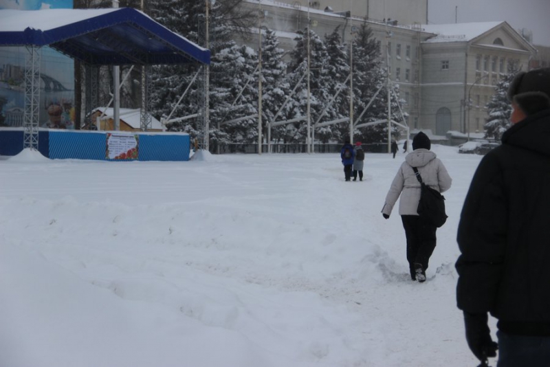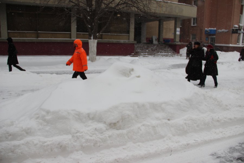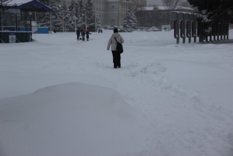 Сегодняшний снегопад до сих пор мешает передвигаться жителям облцентра. Прошел целый день, на время снег прекращался, сейчас он идет слабее, однако несколько улиц и главная площадь города – Театральная – остаются плотно укрытыми снежным покровом.