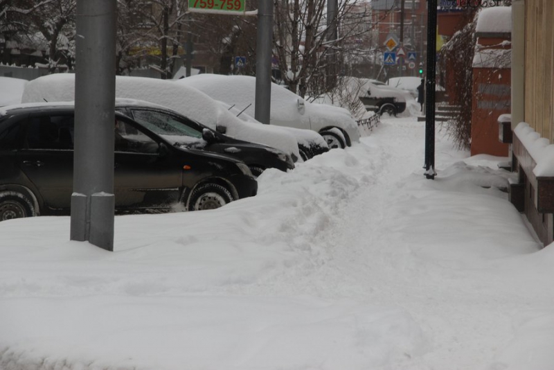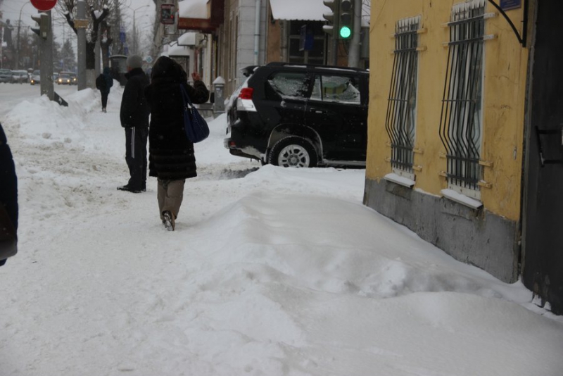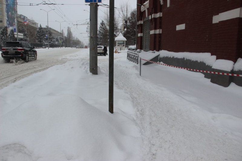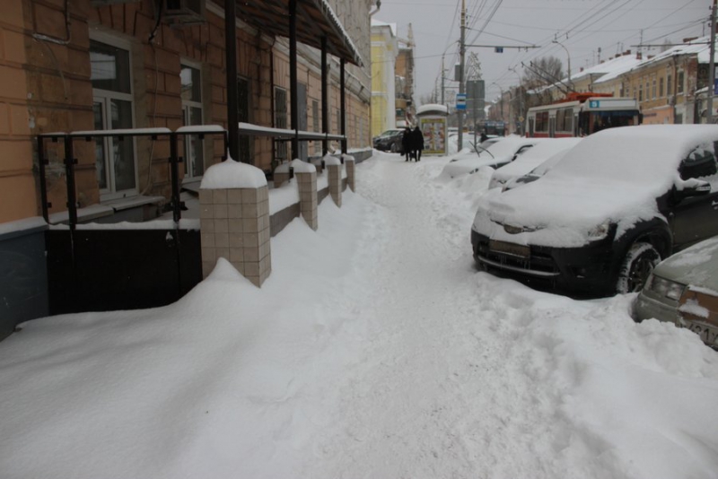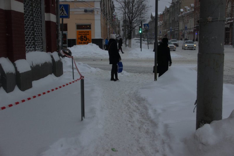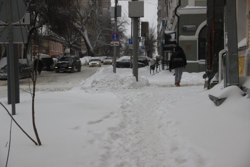 Тротуары в центре Саратова остаются занесенными снегом. В этом убедился корреспондент «Четвертой Власти», обойдя главные улицы города.