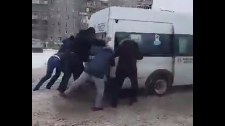 На Тархова пассажиры выталкивали маршрутку из ледяного плена