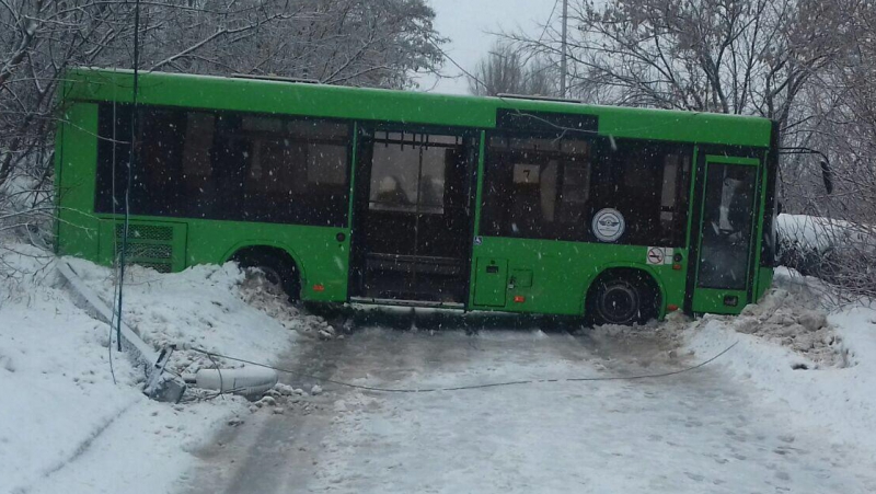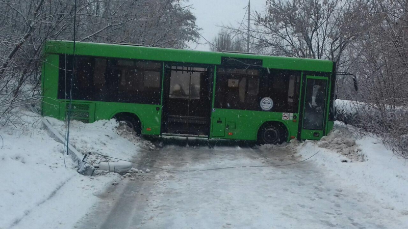 В поселке Князевка Заводского района Саратова на скользкой дороге развернуло автобус с людьми. Об этом сообщают очевидцы.