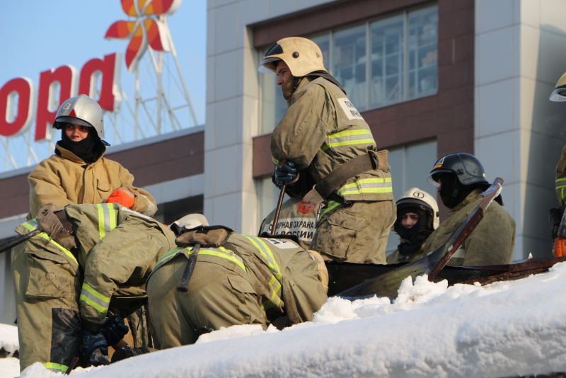 По словам корреспондента «4В», дым из-под крыши наблюдался в районе сервисного центра по ремонту мобильных телефонов. Сейчас ведется проливка кровли. По одной из версий, пожар мог произойти из-за замыкания проводки.