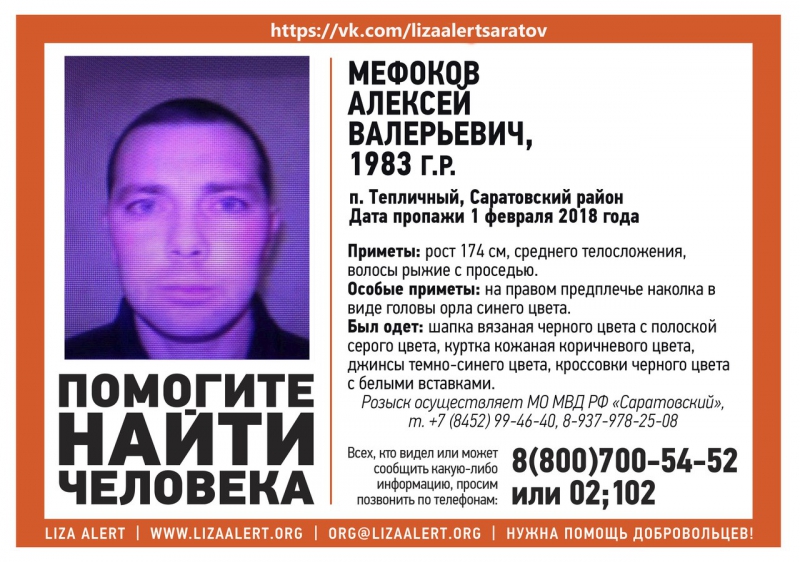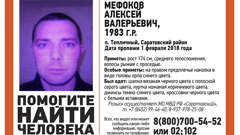 В поселке Тепличный Саратовской области пропал 34-летний Алексей Мефоков. Об этом сообщают волонтеры группы «Лиза Алерт» в соцсетях.