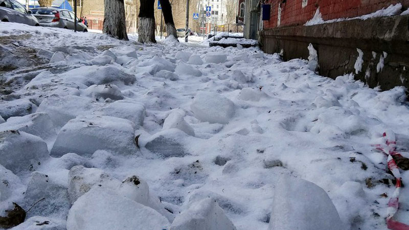 В центре Саратова прохожие вынуждены пробираться по улицам «звериными тропами» из-за валяющихся на тротуаре глыб льда. Жалобу на это разместили администраторы группы «Саратов онлайн».