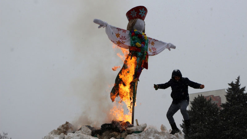 В Саратове с третьего раза удалось сжечь чучело Масленицы