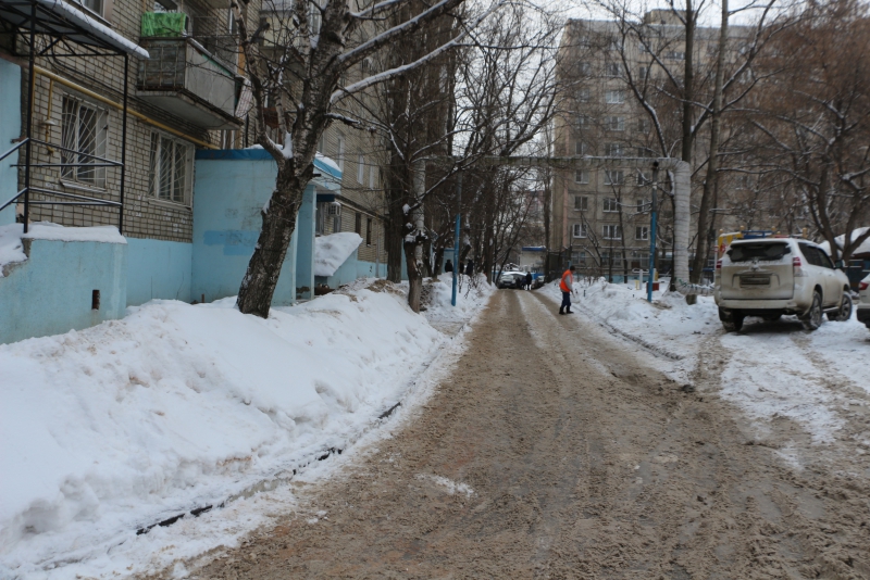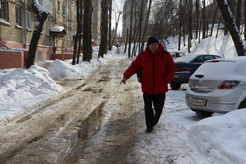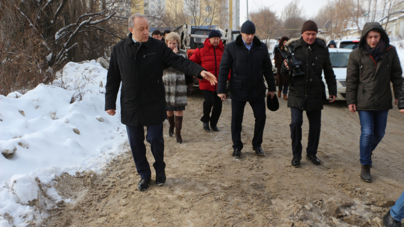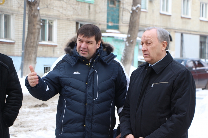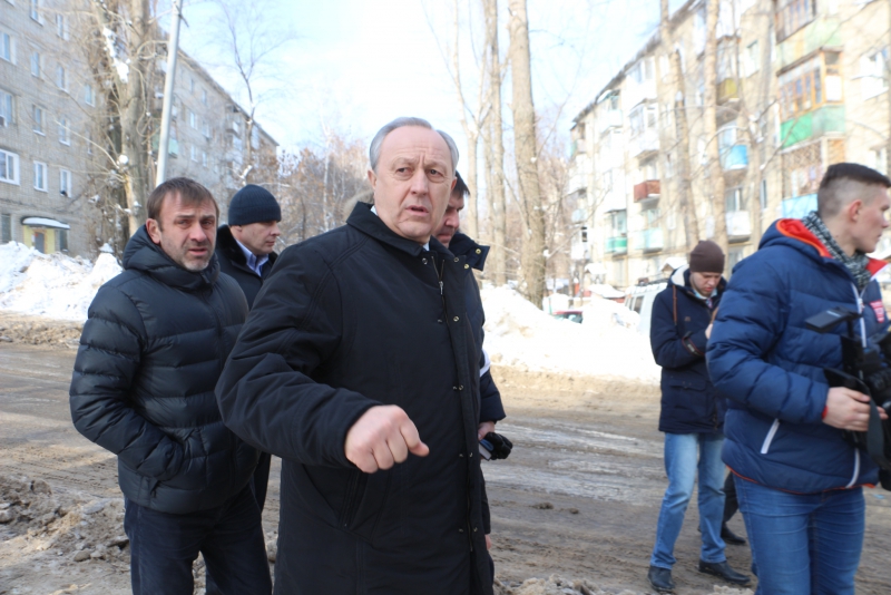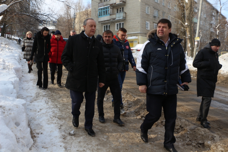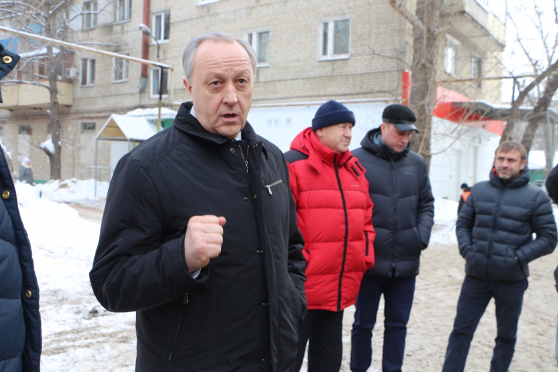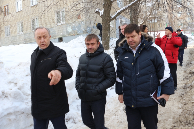 Радаев побывал во дворе дома 75/77 по улице Университетской. На его состояние ему пожаловались граждане в приемную. Губернатор обратил внимание, что весь двор покрыт льдом. Он предложил использовать пневмомолот, чтобы быстро решить проблему.