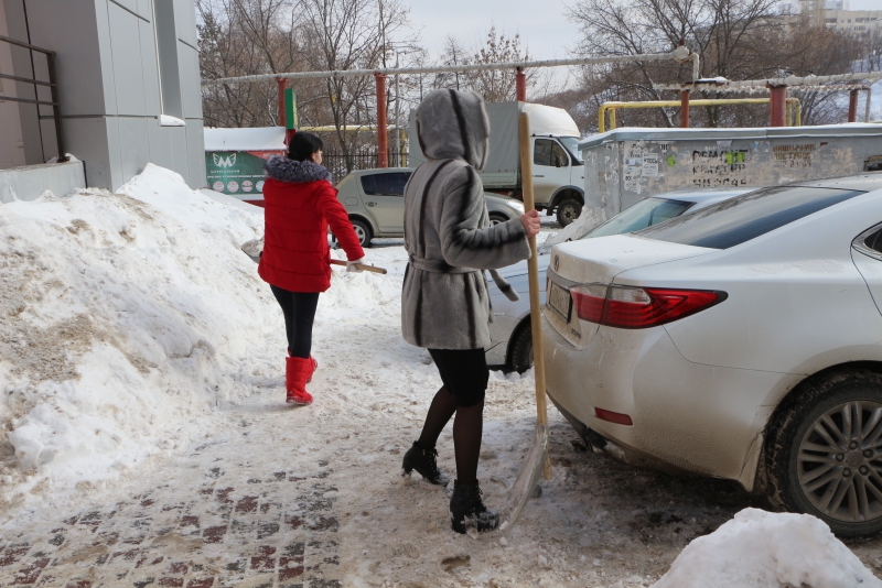 «Вручную здесь, конечно, будет непросто, надо мышцы хорошие иметь. Необязательно гидромолот, а ручные есть еще такие, они очень чувствительные на нагрузку как раз. Но лед надо убрать. Давайте включайтесь. Видно, что работы идут, но нужен эффект. Потому что главное, на что люди жалуются, - лед», - отметил Радаев.
