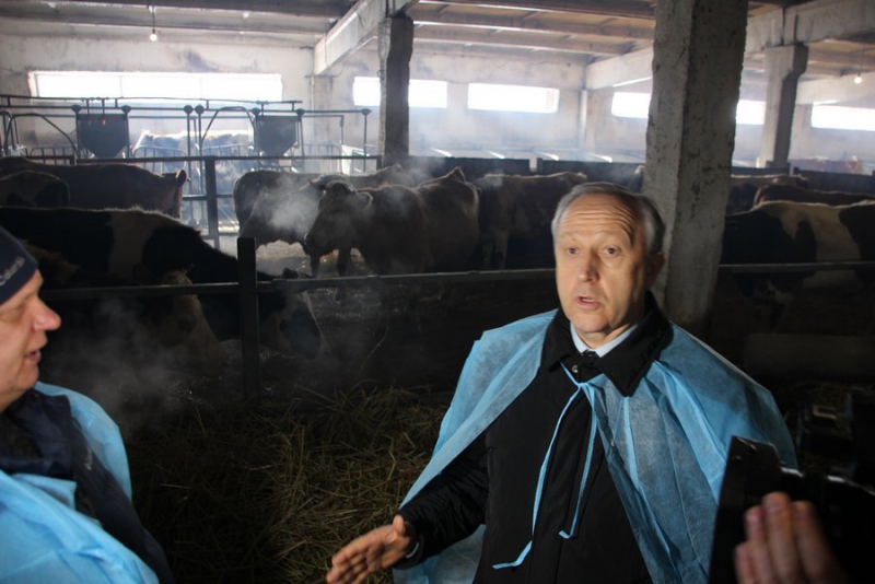 Валерий Радаев зашел в коровник, осмотрел его. Директор фермы сообщил, что всех животных покупал у местного населения.