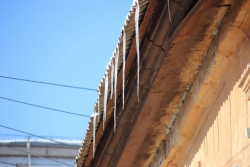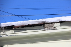 На указанных домах, действительно, больше нет сосулек и пластов снега. Теперь на тротуарах валяются огромные ледяные глыбы, которые мешают пешеходам ходить. Стоит отметить, что на домах №№64, 72, 76, 79, 83, 84, 86 и 88 по улице Челюскинцев свисают не менее угрожающего вида сосульки и наледь. Отдельно можно выделить дом № 86. Прямо над входом в подъезд разрушается козырек здания. Здесь горожанам стоит опасаться не только снега и льда, но и деревянной балки с железом. Складывается впечатление, что коммунальщики почистили исключительно крыши домов, которые были отмечены в публикации.