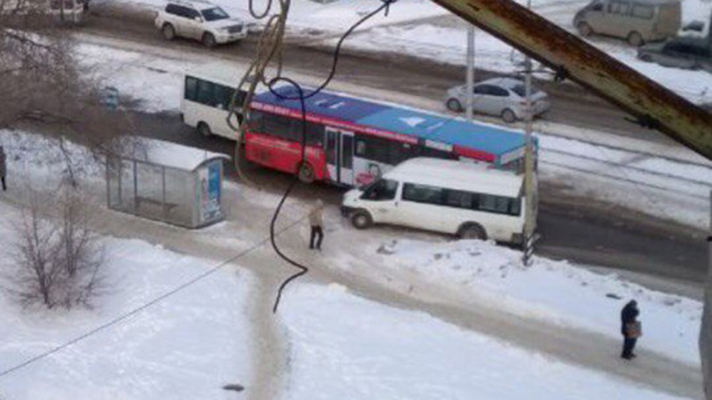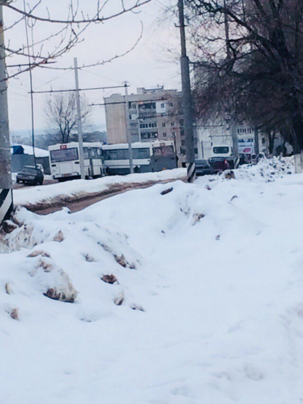 По их словам, это произошло на улице Тульской. По снимкам сложно судить, что именно произошло, вероятно, автобус столкнулся с одним из микроавтобусов.