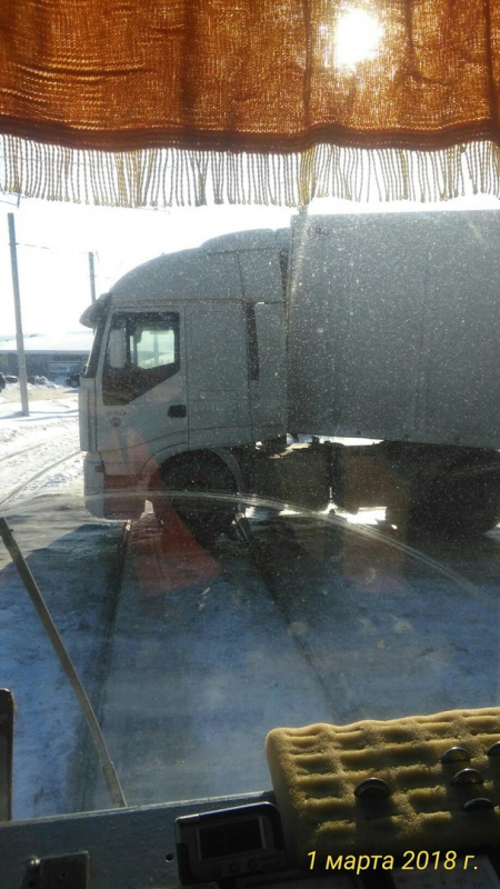 В комментариях к этому сообщению появилось два снимка, из которых следует, что помехой для трамваев стал застрявший на путях большегруз. Как видно на фото, фура стоит поперек путей.