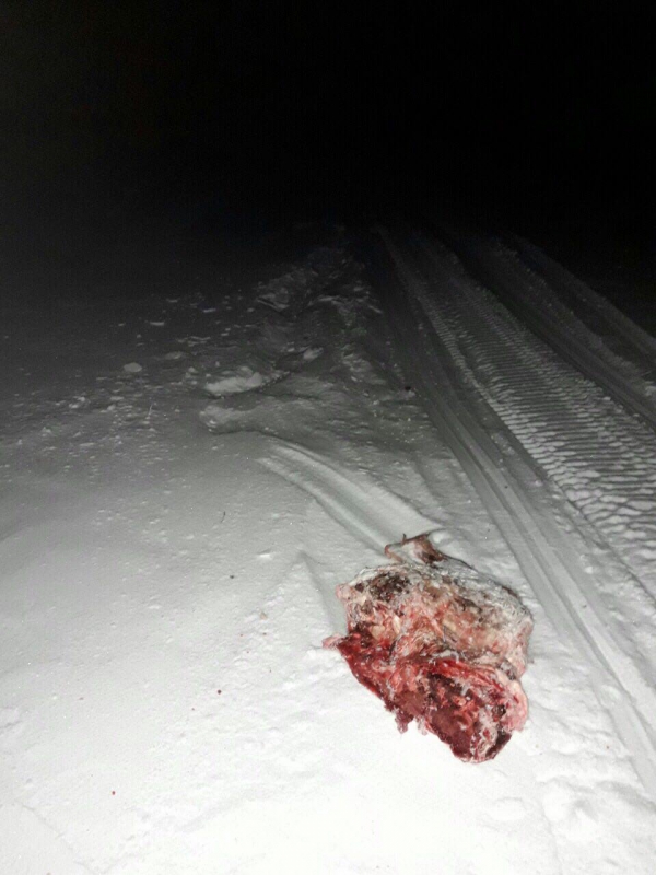 Сегодня около 11.00 егеря обнаружили место разделки лосей у реки Терешки, там лежали 2 шкуры, голова и нога.