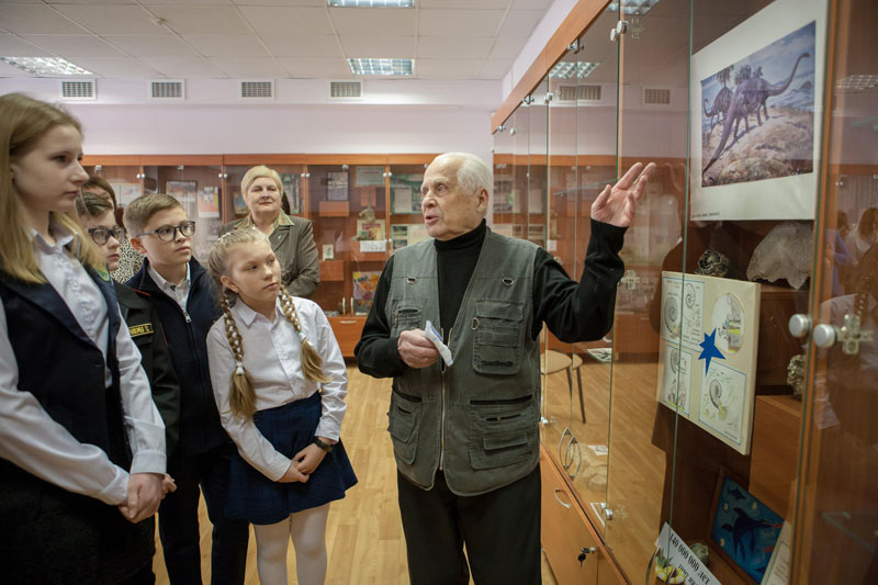 Даже в свой день рождения Дмитрий Сергеевич не смог отказать юным краеведам - призерам экологических конкурсов в экскурсии по музею, экспозицию которого три года назад передал в дар предприятию. Дети не только внимательно слушали экскурсовода, но и делились своими наблюдениями, находками, рассказывали об интересных местах Саратовской области. Каждый хотел пообщаться и лично поздравить с юбилеем ведущего легендарной краеведческой телепередачи, которая выходит в эфир уже больше полувека.