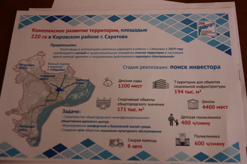 На территории аэропорта «Центральный» в Кировском районе Саратова могут появиться бульвар, открытые спортивные площадки, торгово-развлекательные центры. Об этом сказала заместитель директора по архитектуре и градостроительству ГУПП «Институт Саратовгражданпроект» Саратовской области Надежда Шитова на площадке «Центры роста в регионах» на первом Саратовском экономическом форуме «Движение только вперед!».