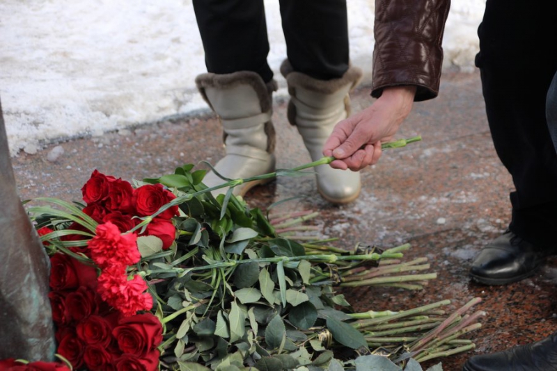 Саратовские чиновники принесли красные розы к памятнику Табакову