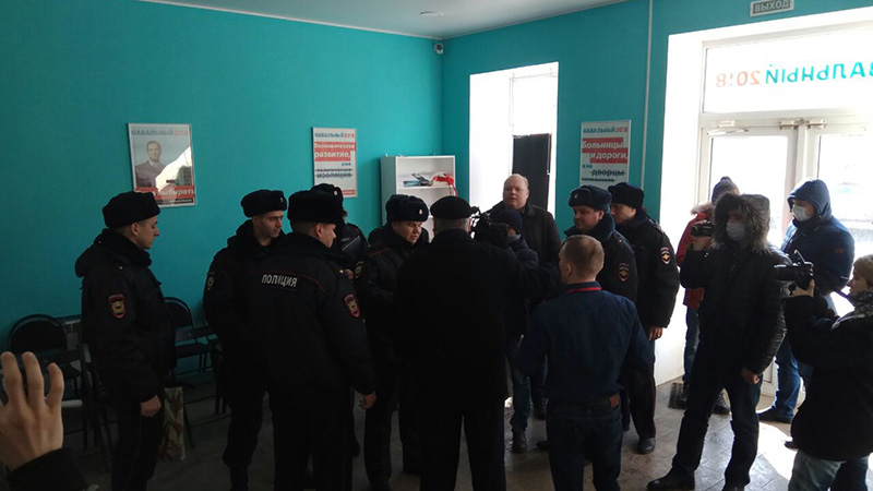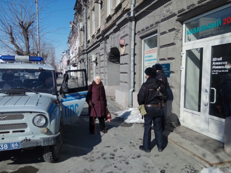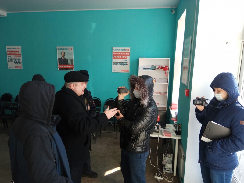 В саратовском штабе оппозиционера Алексея Навального свыше десятка полицейских проводят осмотр в связи с сообщением о незаконной агитации. Об этом корреспонденту «Четвертой Власти» рассказал координатор штаба Михаил Мурыгин.